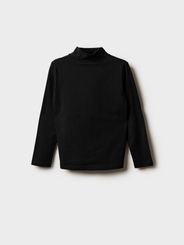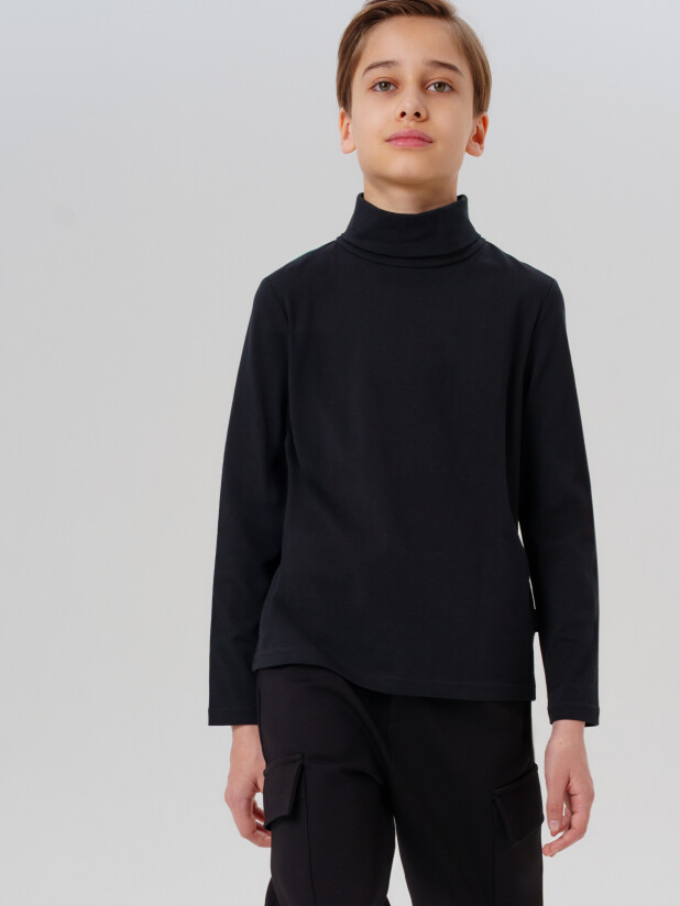 Модная чёрная трикотажная водолазка в школу для мальчика от PlayToday — выбор для тех, кто ценит комфорт, стиль и универсальность!