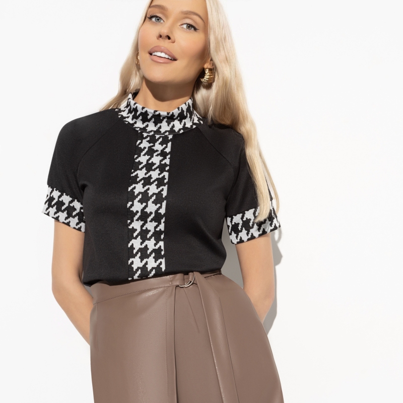 Пиф-паф! Ты стреляешь в упор. Твой взгляд пронзает насквозь. И теперь он навсегда в твоей власти. Ты девушка с опасным оружием в виде собственного великолепия. Водолазка в черно-белых тонах только подчеркивает твоё превосходство. Комбинированная водолазка с коротким рукавом из эластичной ткани. Хорошо смотрится в заправленном виде и навыпуск. Вас ждет уникальная возможность приобрести комбинированную водолазку «Отражение чувств (нью)» оптом, чтобы насладиться не только ее стильным видом, но и высочайшим качеством. Эта водолазка женская станет настоящим украшением вашего гардероба, идеально сочетая в себе элегантность и комфорт. Черно-белые тона подчеркивают вашу индивидуальность, а эластичная ткань Милано с трикотажной набивкой обеспечивает превосходную посадку. Такая водолазка отлично подходит для любого случая — будь то деловая встреча, вечерний выход или повседневная прогулка. Носите ее заправленной или на выпуск, и вы всегда будете в центре внимания. Приобретая водолазки женские оптом, вы получаете не только выгодное предложение, но и возможность разнообразить свой ассортимент стильной и современной одеждой. Эта водолазка женская с коротким рукавом станет отличным вариантом для любой женщины, которая ценит комфорт и стиль. Ее универсальный дизайн позволяет легко комбинировать с различными элементами гардероба — от классических брюк до джинсов или юбок. Независимо от размера, будь то водолазка женская больших размеров или стандартная, вы можете быть уверены в ее безупречной посадке и изяществе. Водолазка женская теплая с горлом «Отражение чувств (нью)» создана для того, чтобы дарить уют и уверенность в себе. Эта водолазка женская черная не только подчеркнет вашу изысканность, но и согреет в прохладные дни. Благодаря качеству материала и стильному исполнению, она станет любимым элементом вашего гардероба. Не упустите шанс приобрести водолазки женские оптом и подарить своим клиентам возможность ощутить роскошь и комфорт, которые они заслуживают. Ваш бизнес будет процветать, а покупатели останутся довольны вашим вниманием к качеству и стилю. Комментарии к товару
