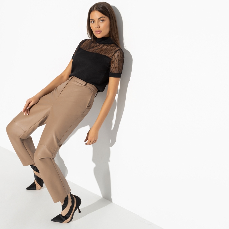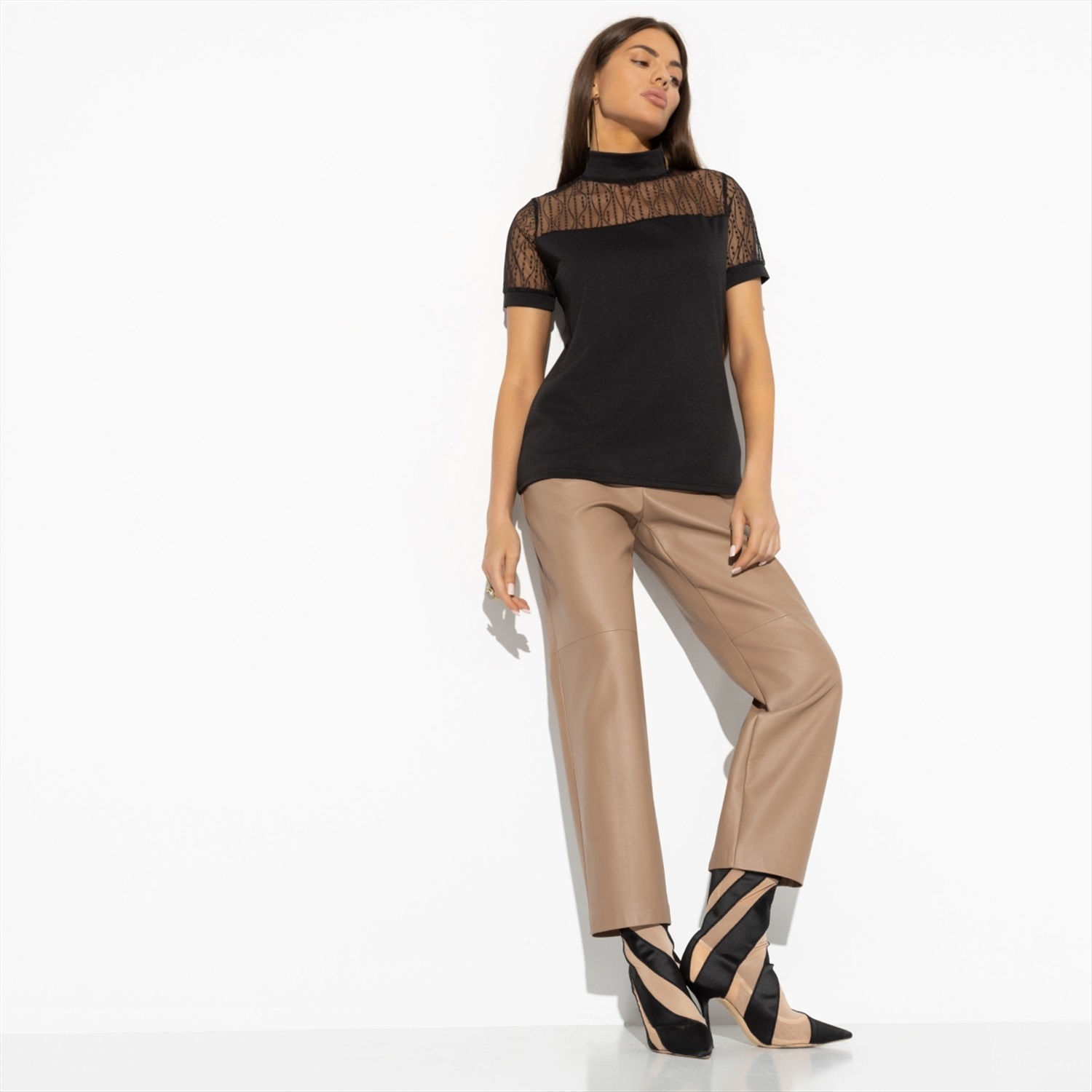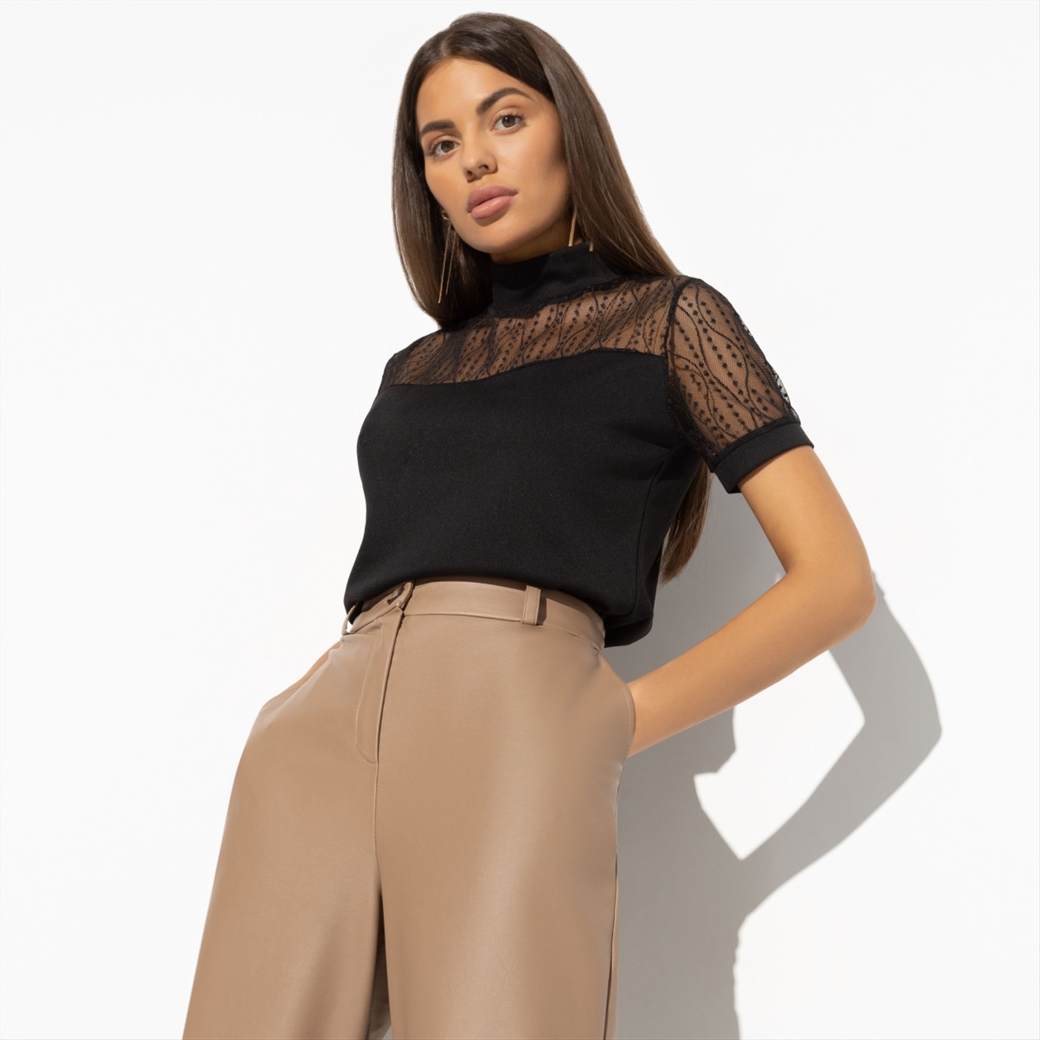 Прозрачные топы демонстрируют на подиумах Miu Miu, Gucci и Tory Burch. За вашим игривым настроением не нужно так далеко ходить. CHARUTTI предлагает вам водолазку с кружевом. Недорого и сердито. Водолазка приталенного силуэта. Хорошо смотрится заправленной и навыпуск.