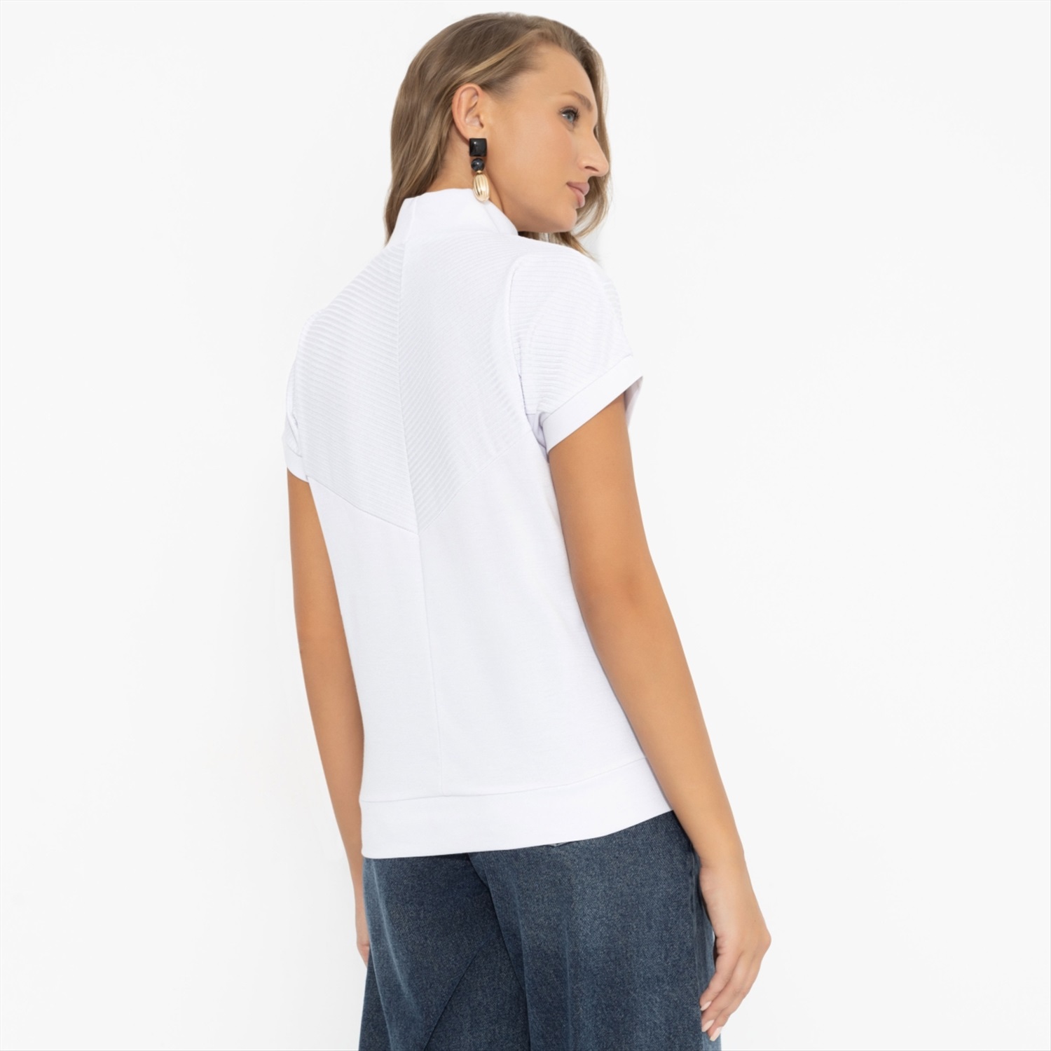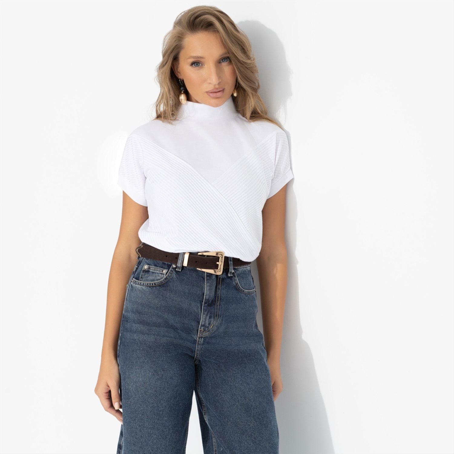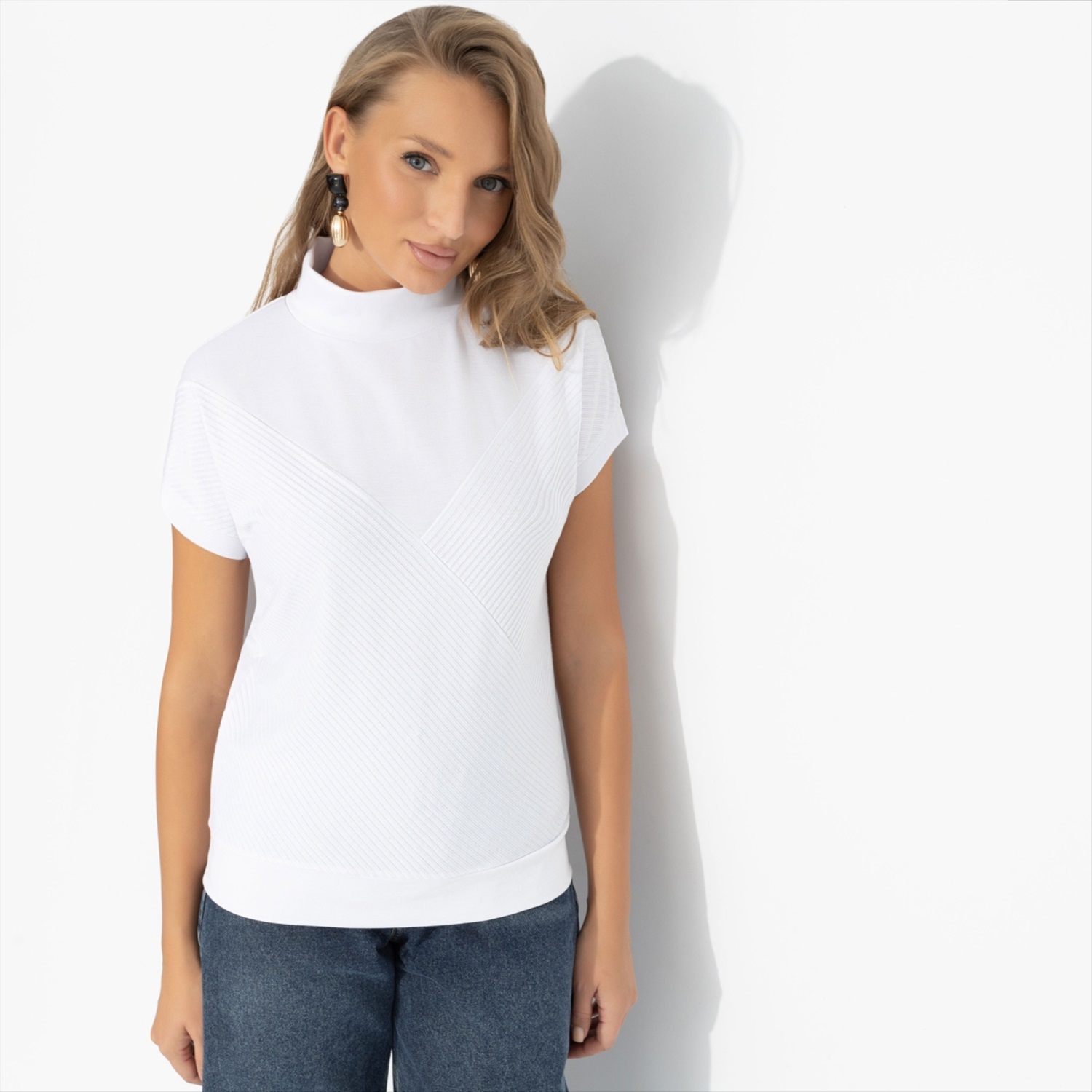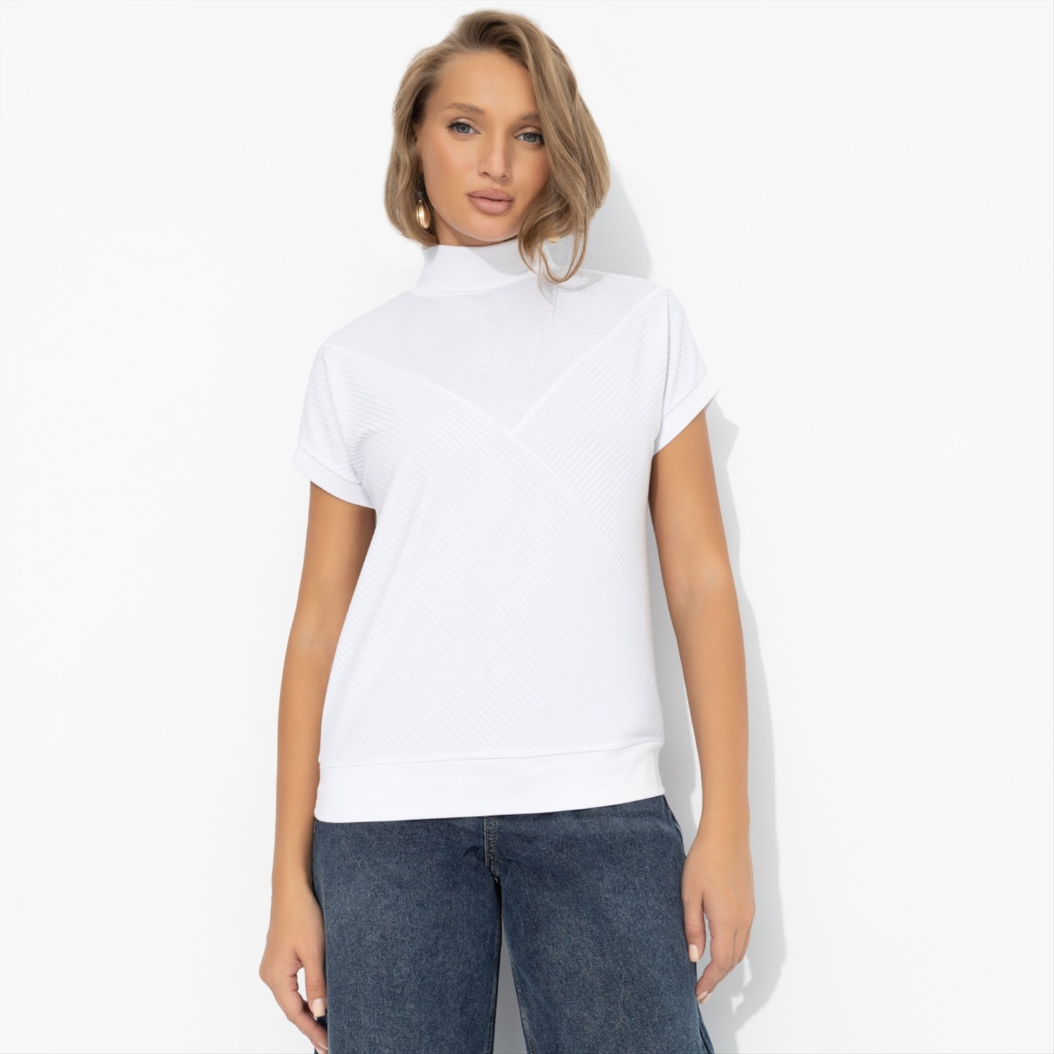 ТН ВЭД: 6110309900; Состав: «Милано», трикотаж лапша (65% п/э, 30% вискоза, 5% стрейч); Плотность ткани: Средняя; Тип ткани: Трикотаж; Вид застежки: Нет; Карманы: Нет; Основной цвет ткани: Белый; Отрезная талия: Нет; Подклад: Есть; Резинка по талии: Нет; Рисунок/раппорт: Нет, все изделия идентичны; Сезон: Круглогодичный; Силуэт: Свободный; Стиль: Повседневный Параметры модели на фото: Грудь: 90 см Талия: 65 см Бёдра: 91 см Рост: 168 см. Размер на модели: 44 Длина изделия: * 44 размер - 58 см * 46 размер - 59 см * 48 размер - 60 см * 50 размер - 61 см * 52 размер - 62 см * 54 размер - 63 см Длина рукава: * 44 размер - 13 см * 46 размер - 13,5 см * 48 размер - 14 см * 50 размер - 14,5 см * 52 размер - 15 см * 54 размер - 15,5 см Обхват груди: * 44 размер - 92 см * 46 размер - 96 см * 48 размер - 100 см * 50 размер - 104 см * 52 размер - 108 см * 54 размер - 112 см Обхват талии: * 44 размер - 86 см * 46 размер - 90 см * 48 размер - 94 см * 50 размер - 98 см * 52 размер - 102 см * 54 размер - 106 см Обхват бёдер: * 44 размер - 84 см * 46 размер - 88 см * 48 размер - 92 см * 50 размер - 96 см * 52 размер - 100 см * 54 размер - 104 см Вес товара, кг: * 44 размер - 0.21 * 46 размер - 0.22 * 48 размер - 0.23 * 50 размер - 0.24 * 52 размер - 0.27 * 54 размер - 0.28 Габариты товара (ДхШхВ), см.: * 44 размер - 32 х 32 х 2 * 46 размер - 32 х 32 х 2 * 48 размер - 32 х 32 х 2 * 50 размер - 32 х 32 х 2 * 52 размер - 32 х 32 х 2 * 54 размер - 32 х 32 х 2 Белый цвет говорит без слов – о свежести, лёгкости и внутреннем равновесии. Она не спешит, просто идёт навстречу дню, ощущая, как мягкая ткань касается кожи. Простой акцент, но в нем – всё настроение утончённости. Водолазка из трикотажа «лапша» с мягкой стойкой и коротким рукавом. Эластичный трикотаж с вискозой создаёт комфортную посадку и подчёркивает изгибы фигуры.