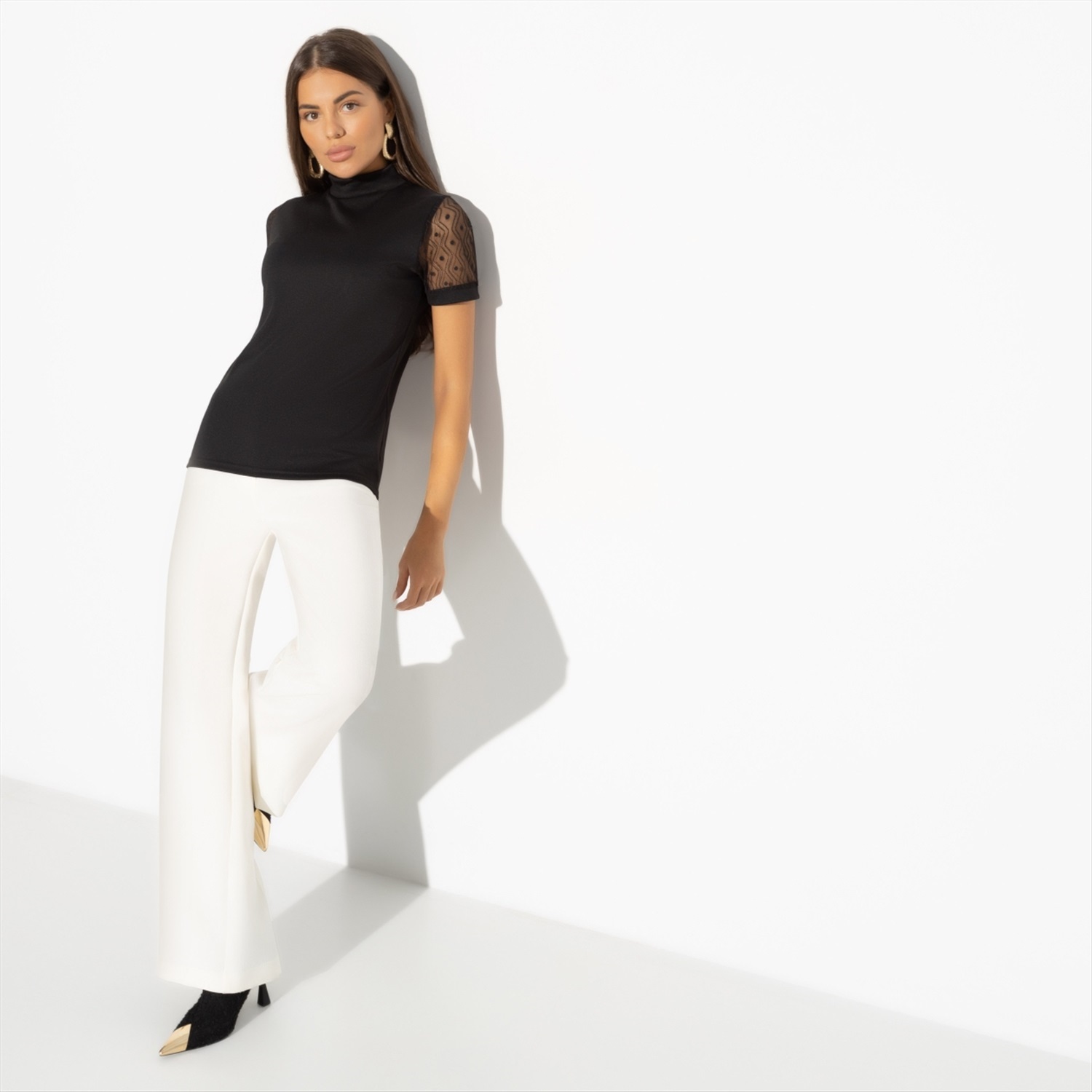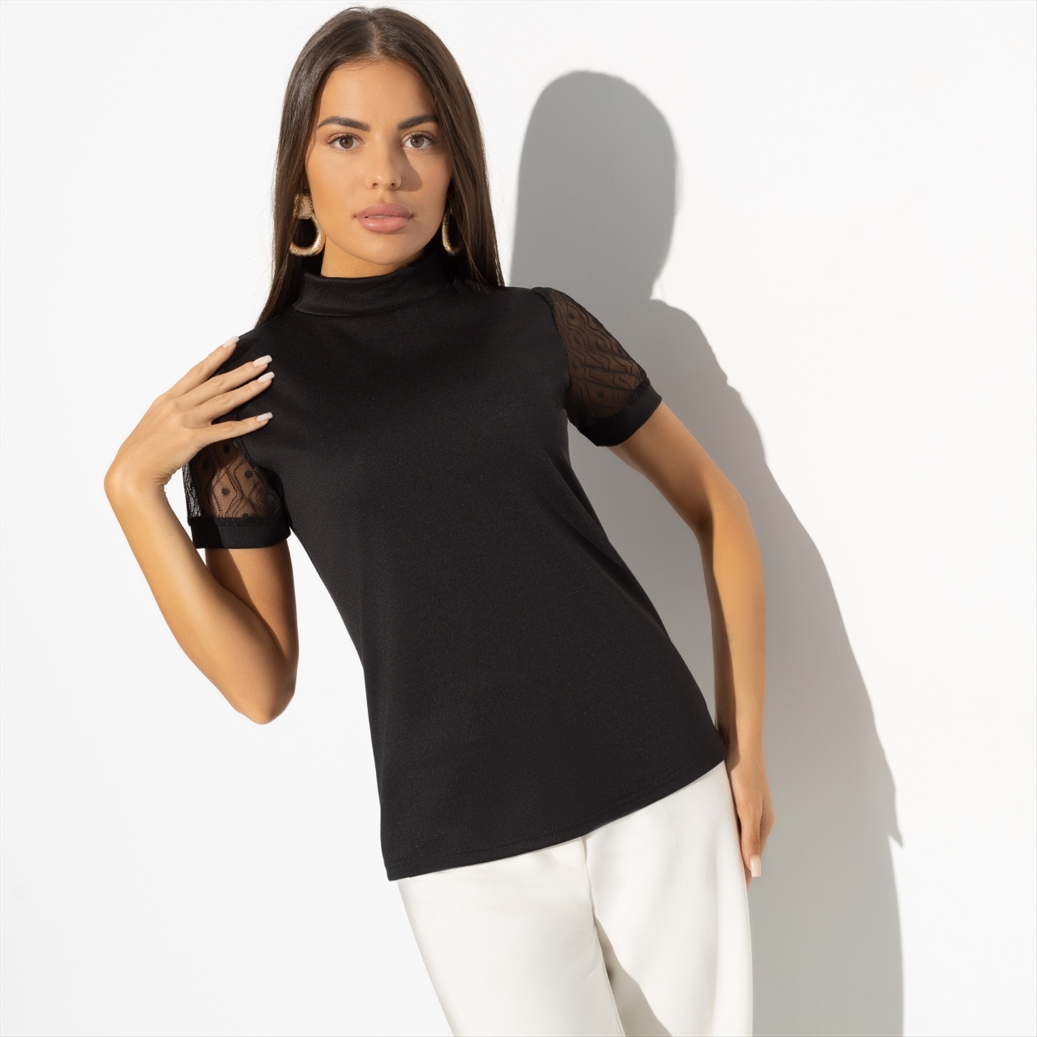Если спросишь, в чем ты была, когда он понял, что любит тебя, он не сможет ответить. Магия черной водолазки именно в этом. Твой образ проникает в самое сердце, не оставляя путей к отступлению. Водолазка из эластичной ткани и акцентными рукавами. Изделие хорошо смотрится как навыпуск, так и в заправленном виде.