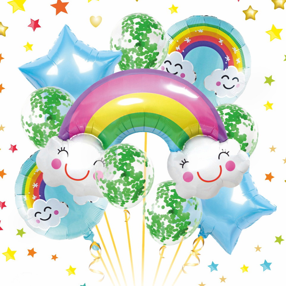 Воздушные шары 10 шт, "Радужный день" (80 см - Радуга, 44см,25см)