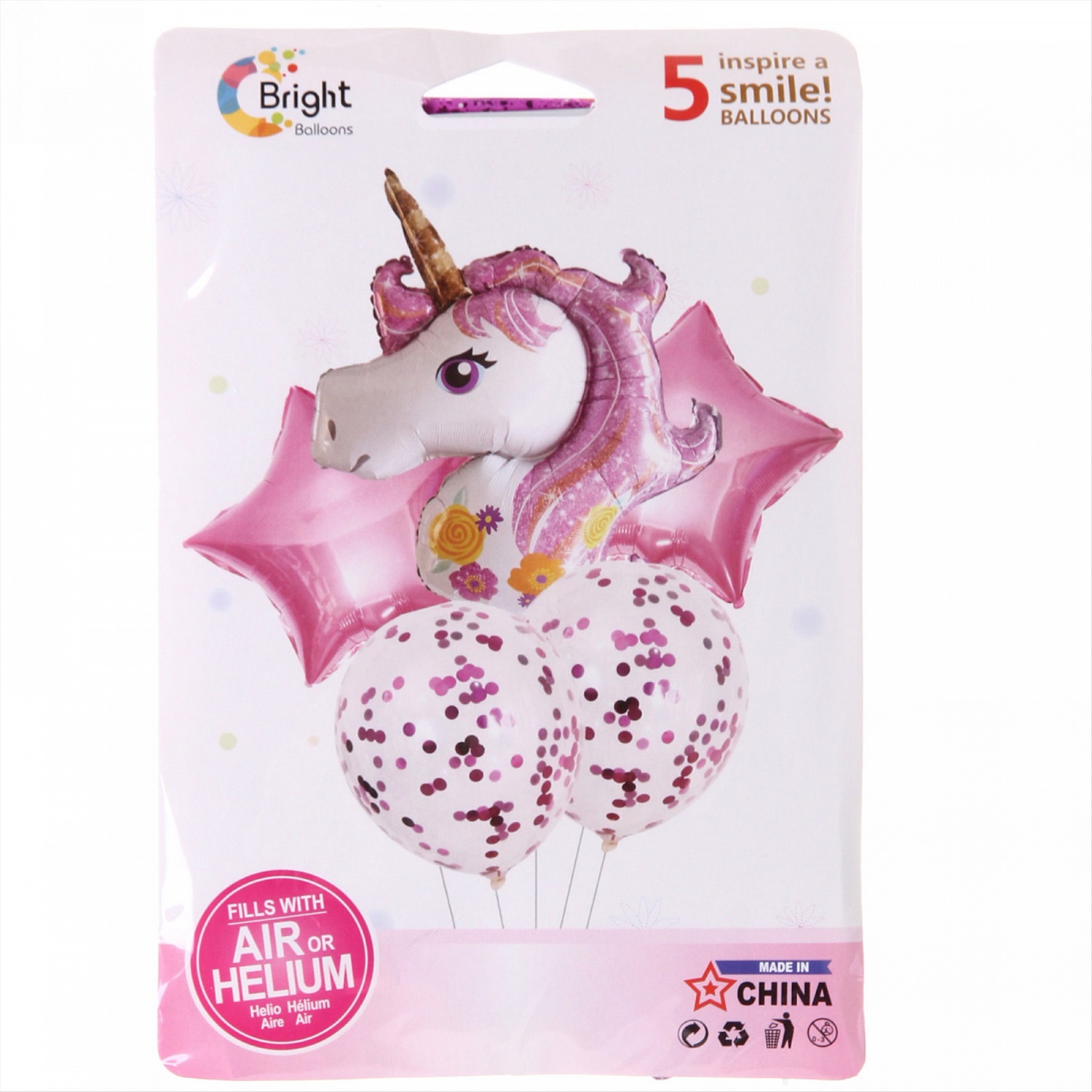 Воздушные шары 5 шт. "Милый Единорожек" (10045см - Единорог, 45см,12"/24см)
