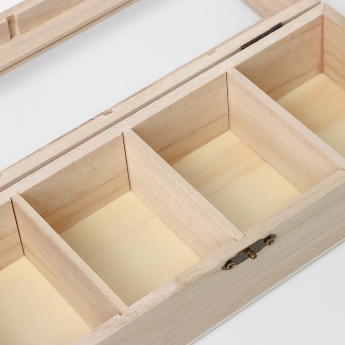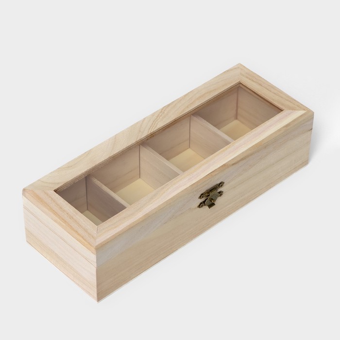Габариты: 25 x 9,5 x 6 Страна: Китай В боксе: 60 шт Состав: Дерево, металл, стекло Материалы: дерево, металл, стекло Фасовка: по 1 шт Габариты товара: 25 см × 9,5 см × 6,5 см Сертификат: Не подлежит сертификации Набор: Нет Цвет: Бежевый Количество секций: 4 Рисунок: Нет Материал: Дерево Герметичная крышка: Нет Тип нанесения рисунка: Без нанесения Можно мыть в посудомоечной машине: Нет Текстура: Гладкая Особенности: Без особенностей Органайзер для хранения чайных пакетиков - это стильный и функциональный аксессуар для вашей кухни, который поможет организовать хранение чайных пакетиков и украсит ваш интерьер. Комментарии к товару