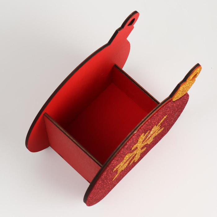 Ящик подарочный деревянный блестящий «Шар снежинка», красный, упаковка, 18.8×9.8×15.5 см