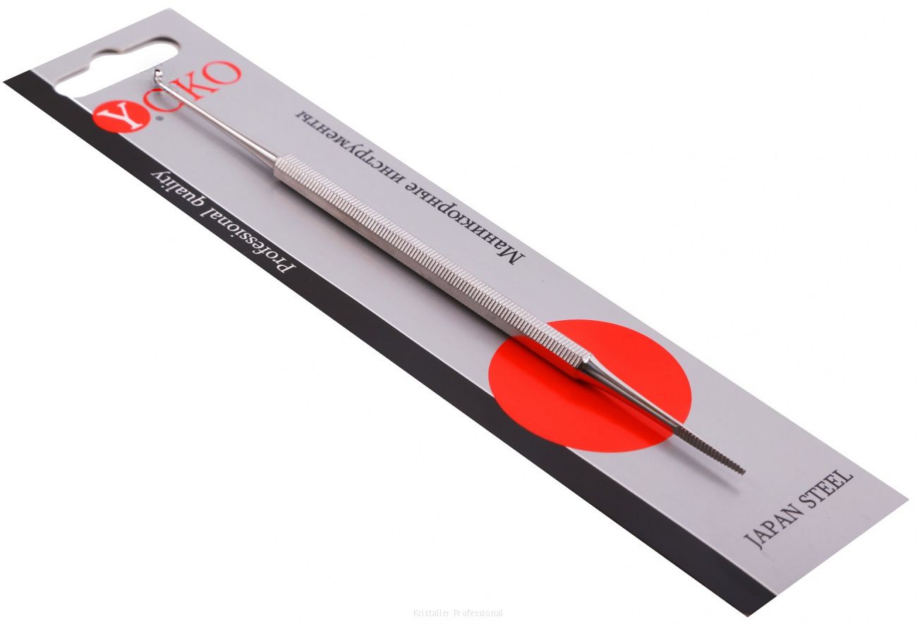 Профессиональная двусторонняя кюретка с глянцевой поверхностью YOKO изготовлена из высокопрочной нержавеющей стали, устойчива к износу и всем видам стерилизации. Пилка сглаживает ногти по краям ногтевых пластин, лопаточка очищает ногтевое плато от птеригия.