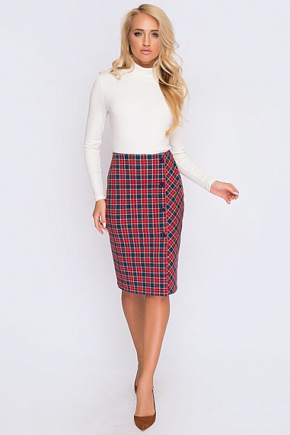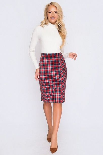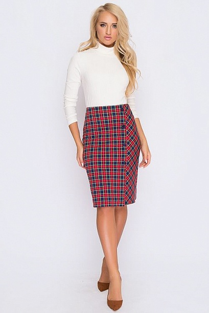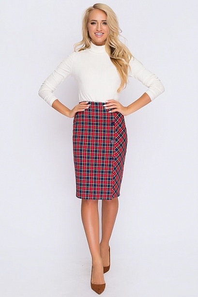 Юбка из трикотажа в клетку с имитацией застежки и разрезом по переду. 30% вискоза 65% п/э,5% эластан Комментарии к товару