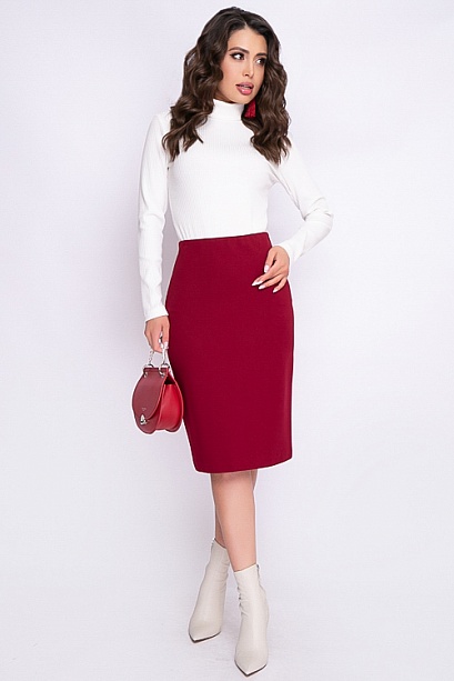 Юбка карандаш из плотного,хорошо держащего форму трикотажного полотна с нейлоном, по талии проложена эластичная резина,в среднем шве спинки потайная застежка молния и шлица.