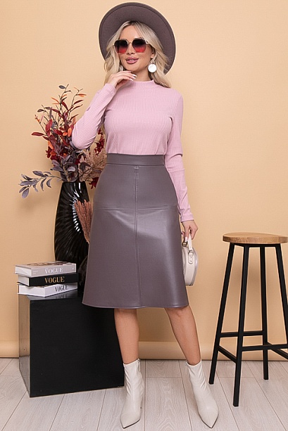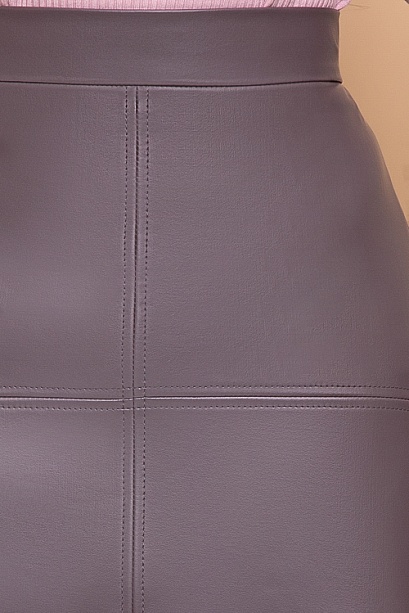 Юбка трапецевидного силуэта из эко кожи с притачным поясом и застежка молния по спинке.
