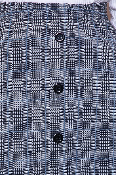 Юбка из жаккардового трикотажного полотна трапецевидного силуэта с резиной по поясу,перед изделия с имитацией застежки. 50% вискоза,45% п/э,5% лайкра Комментарии к товару