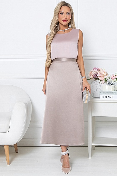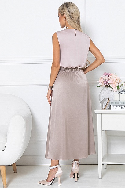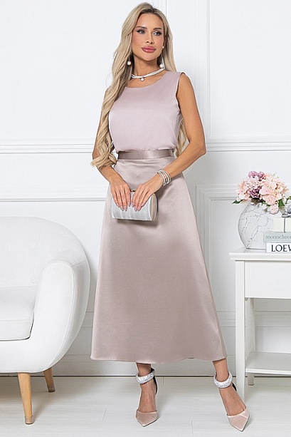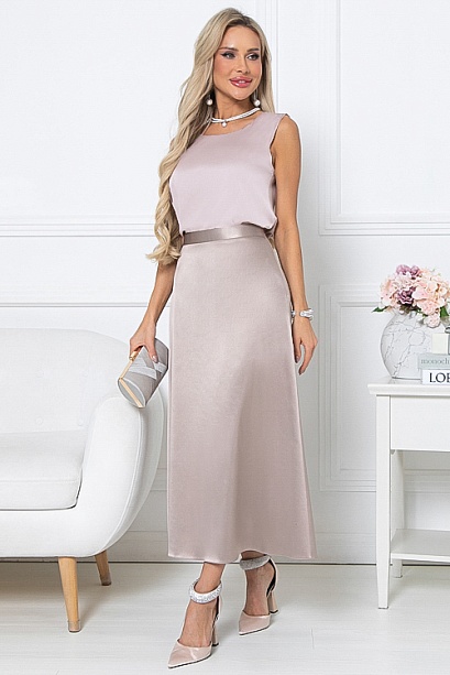 • Юбка  А-образного силуэта из плотного шелка,с притачным поясом и застежкой молния в боковом шве.Пояс юбки по спинке частично собран на резину.