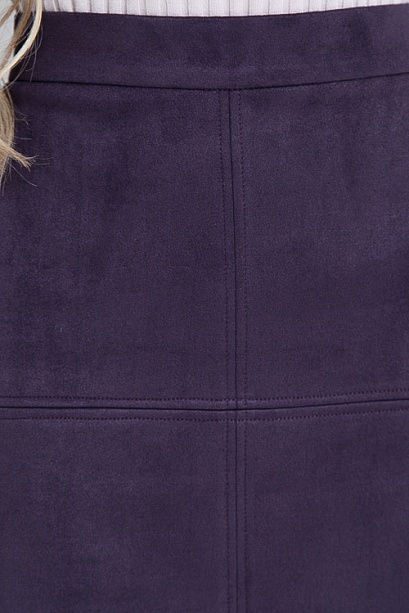 • Юбка трапецевидного силуэта из эко замши с притачным поясом и застежка молния по спинке.