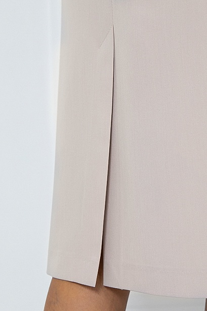 • Юбка из костюмной ткани прямая,слегка зауженная к низу.На подкладе.По талии на обтачке.По спинке-шлица.Застежка на потайную молнию в среднем шве спинки.