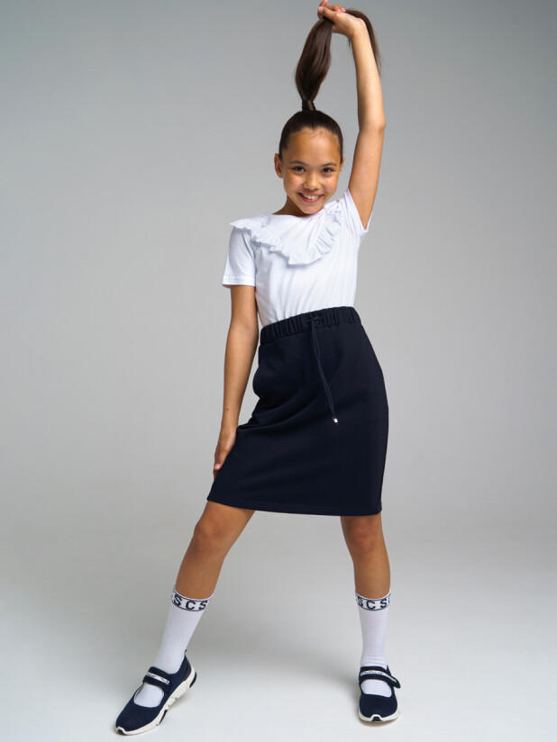 Модная синяя трикотажная юбка в школу для девочки от PlayToday — сочетание комфорта, лаконичности и современного стиля на каждый день.