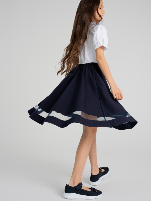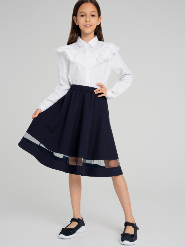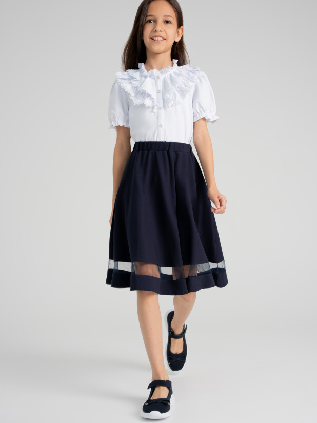 Классическая школьная юбка для девочки подростка. Синяя юбка-клеш - стильный атрибут школьницы на каждый день! Именно такой и должна быть юбка в школу - лаконичной и удобной, простой и изящной, отлично сочетающейся с любым верхом. Юбка для школы выполнена из трикотажа с высоким содержанием вискозы. Благодаря резинке по талии, юбка идеально садится по фигуре.
