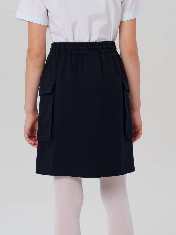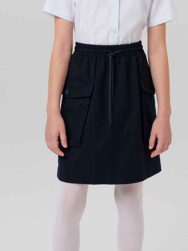 Пояс на эластичной резинке с регулируемым шнурком позволяет легко надевать и снимать элегантную школьную юбку для подростков самостоятельно, а практичные карманы добавляют удобства и функциональности. Лаконичный дизайн модели гармонично вписывается в любой школьный комплект, от строгой классики до расслабленного повседневного стиля.
