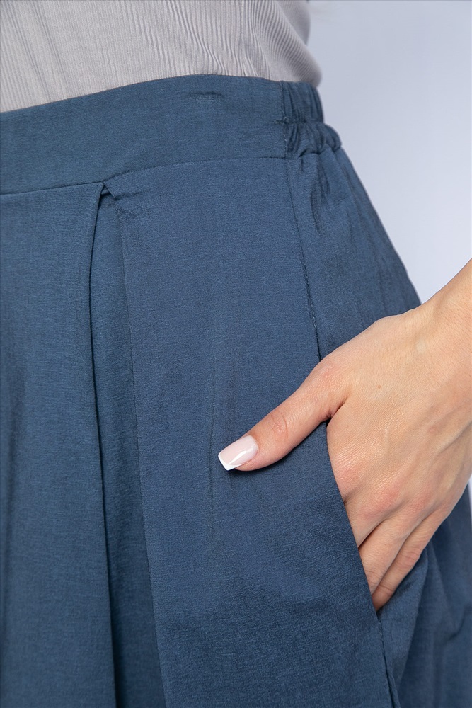 Юбка сочетает в себе несколько модных деталей, придающих ей особый шарм. Спереди изделие украшено двумя бантовыми складками, которые добавляют дополнительный акцент и создают интересный образ. По спинке собрана на резинку для более комфортной посадки, в боковых швах функциональные карманы. Сочетает в себе не только стиль и элегантность, но и удобство и практичность.