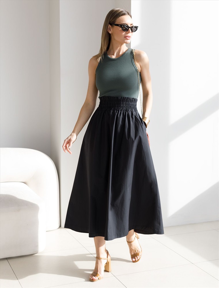 Юбка выполнена из легкого хлопкового поплина. Воздушная модель дополнена боковыми карманами и эластичным поясом на резинке со сборкой. В изделии будет комфортно, даже в самое жаркое время года. Подходит для любой фигуры. Сочетается в костюме с блузкой D29.247 и D29.264.