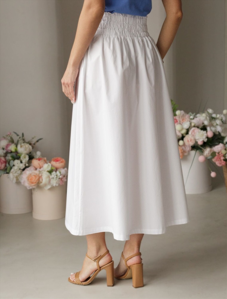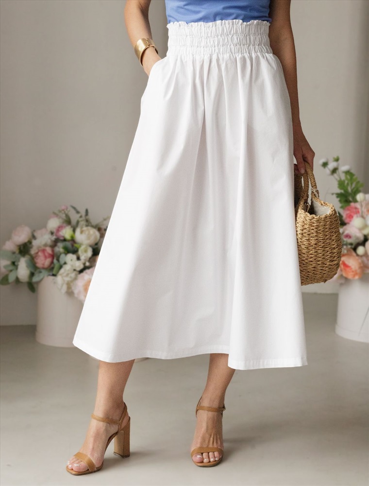 Состав: 100%Хлопок; Параметры модели на первом фото: Рост 170, бюст 89, талия 63, бедра 92; Размер товара на первом фото: 42 Юбка выполнена из легкого хлопкового поплина. Воздушная модель дополнена боковыми карманами и эластичным поясом на резинке со сборкой. В изделии будет комфортно, даже в самое жаркое время года. Подходит для любой фигуры. Сочетается в костюме с блузкой D29.247 и D29.264.