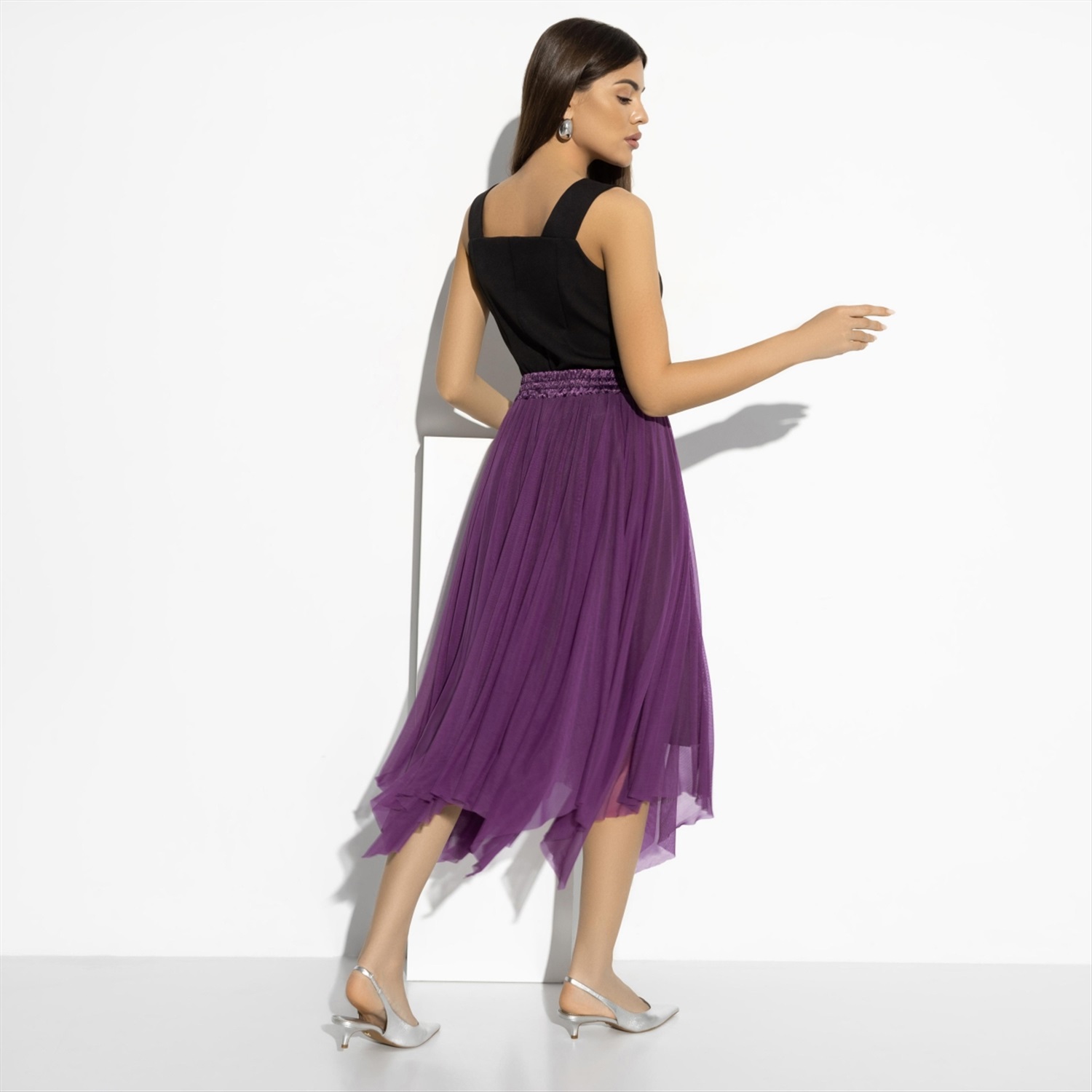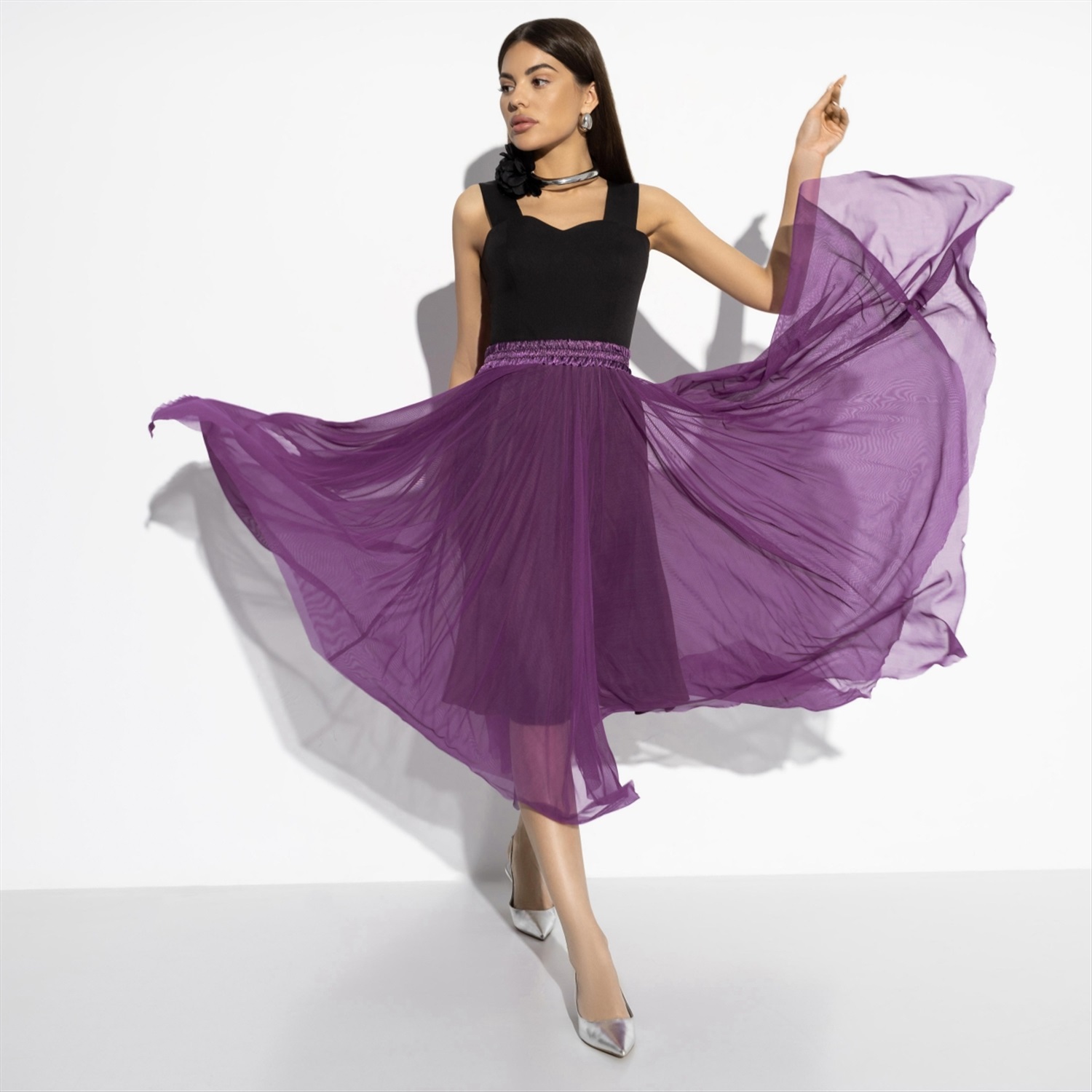 Любите восхождения к вулканам, прыжки с парашютом или погружения к акулам?! Мы тоже нет. CHARUTTI поддерживает модный экстрим – яркая юбка из сетки. Несколько слоев, неровный край и дерзкий фиолетовый цвет. Юбка из сетки на подкладе. Пояс на эластичной резинке из нарядного сатина. Подойдет на любой тип фигуры.