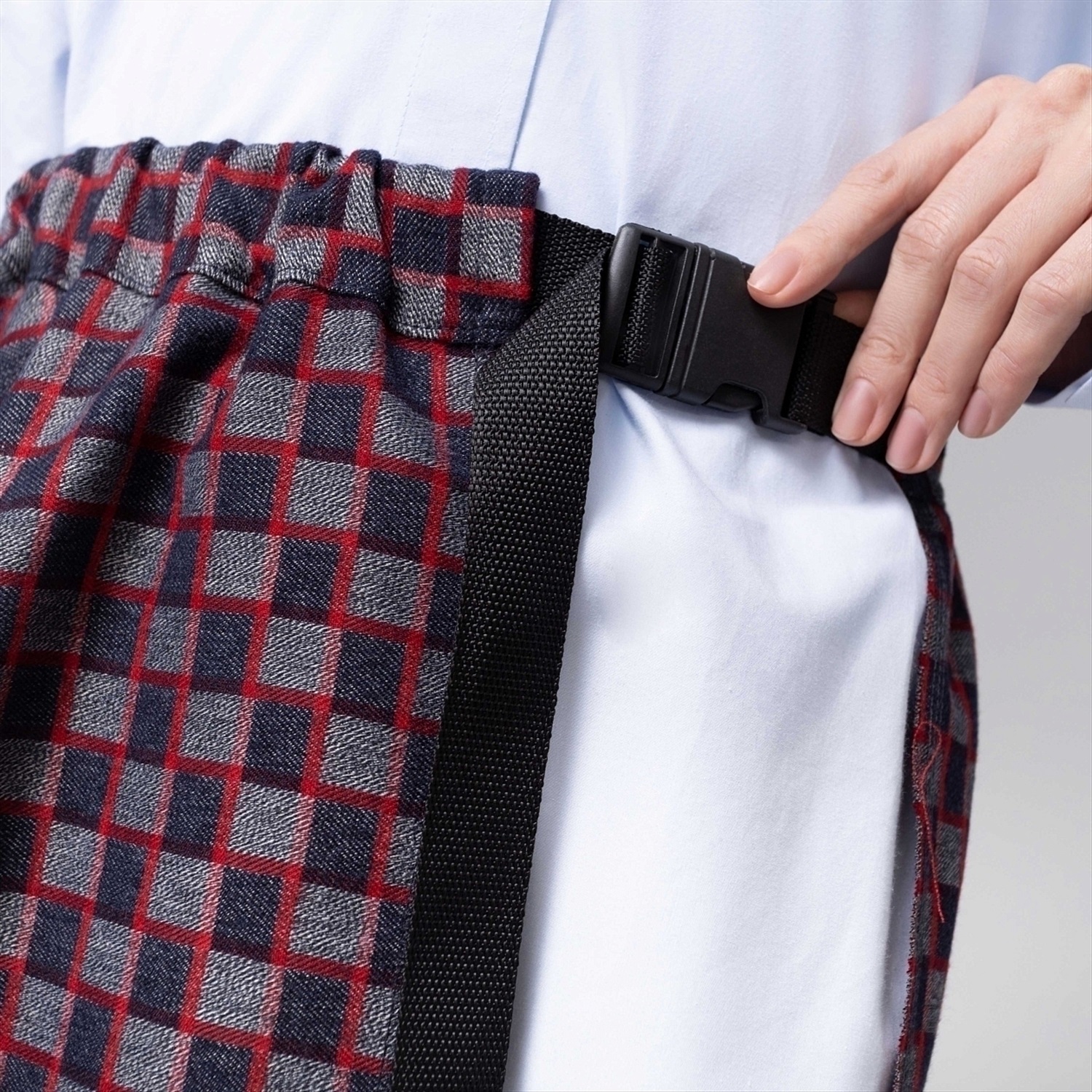 ТН ВЭД: 6204530000; Состав: Костюмная ткань «колледж» (50% вискоза, 50% полиэстер); Плотность ткани: Плотная; Тип ткани: Текстиль; Вид застежки: Пояс; Высота посадки: Высокая; Декоративные элементы: Необработанные швы; Дополнительный цвет ткани: Красный; Карманы: Нет; Основной цвет ткани: Синий; Подклад: Нет; Резинка по талии: Нет; Рисунок/раппорт: Нет, все изделия идентичны; Сезон: Круглогодичный; Стиль: Повседневный; Фасон юбки: Килт