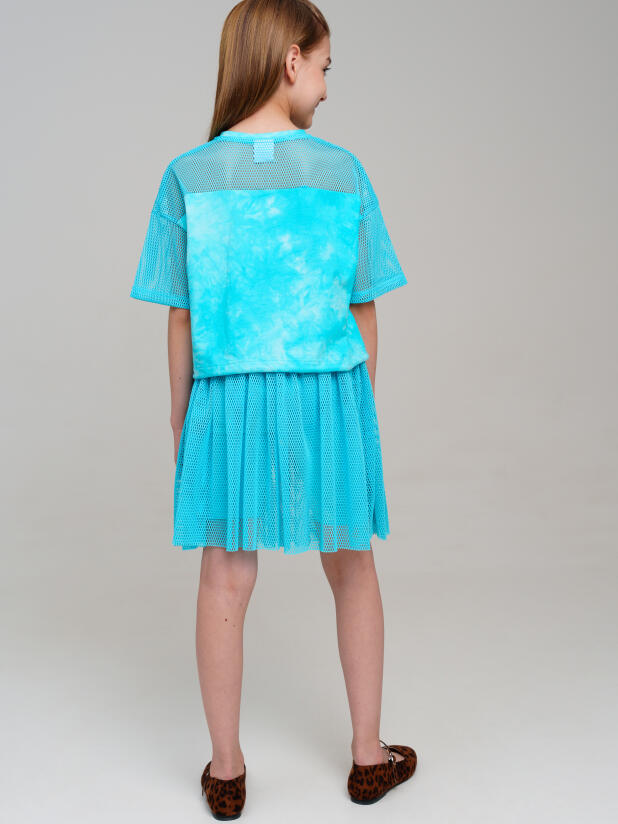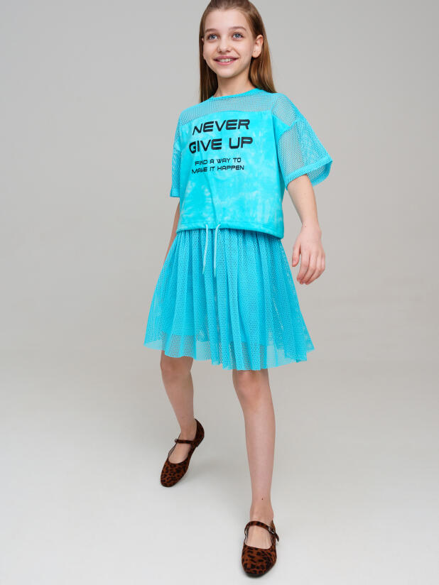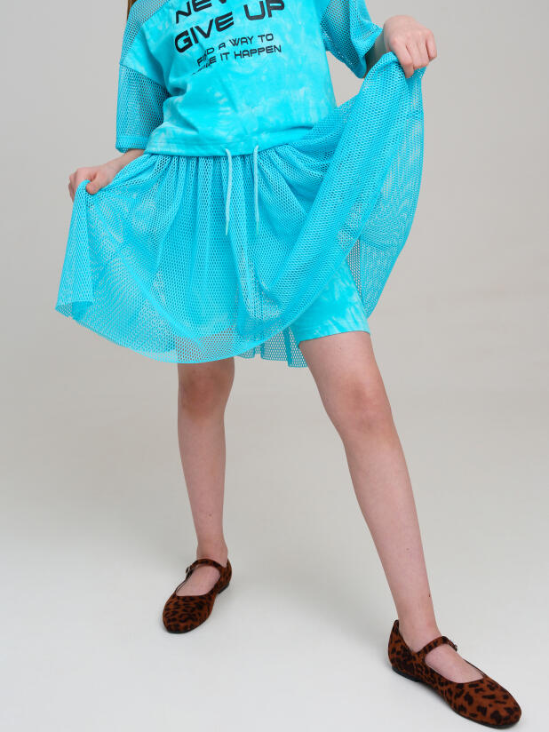 Юбка-шорты для девочки подростка. Юбка-леггинсы из качественного и приятного на ощупь трикотажа джерси. Высокое содержание хлопка 95%. Благодаря наличию эластана в составе ткани изделие держит форму и меньше мнется. По поясу резинка. Декор из сетки. Модель выполнена из качественного и приятного на ощупь трикотажа.