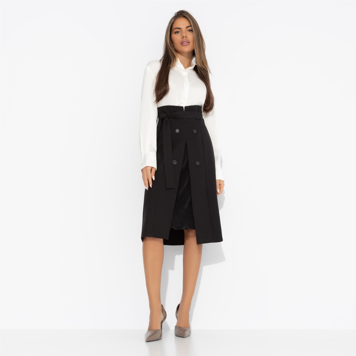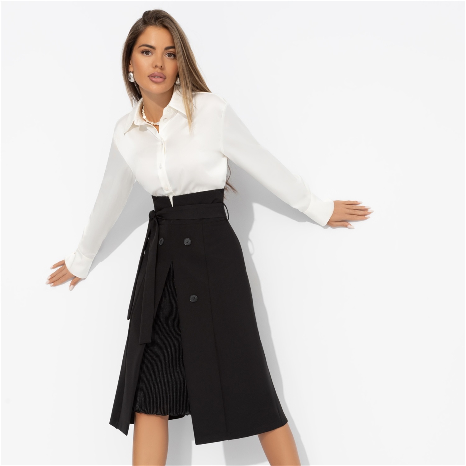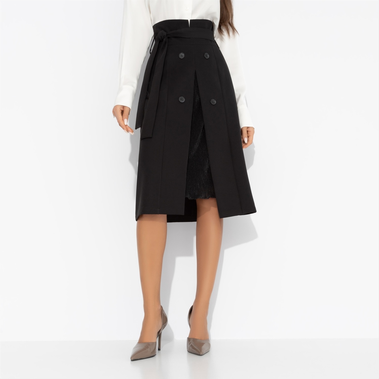 Взлет твоей популярности не остался незамеченным. Вспышки камер, таинственные улыбки и звонки с неизвестных номеров. Ты остаешься верна себе и своему стилю – полна достоинства и элегантности. Юбка ЧАРУТТИ подчеркивает твой статус. Ты не следуешь правилам, ты их переписываешь. Юбка в длине миди трапециевидного силуэта. Акцентный крой – имитация двух слоев в комбинации двух видов ткани. Посадка высокая на талии. Скрытая молния по спинке изделия. Есть пояс в тон изделия.