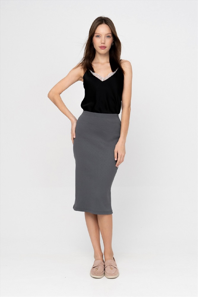 Производитель: POL`MOTIVE Код товара: 22-209L11-30 Состав: х/б - 95 %; эл. - 5 % Вид полотна: кашкорсе цвет: графит Коллекция: BASE Стильная юбка-карандаш, выполненная из приятного к телу мягкого трикотажа кашкорсе с лайкрой, одновременно подходящая как для спортивного, так и для элегантного образа, подчеркивающая женственные изгибы тела. Длина ниже колена. Модель прекрасно подходит для свидания, а в сочетании с классическими блузами и рубашками будет уместна в офисе. Рост модели на фотографии 176 см. размер одежды 44 Длина юбки по боковому шву 42 размер 65 см. 44 размер 65 см. 46 размер 67 см. 48 размер 67 см. 50 размер 69 см. 52 размер 69 см. 54 размер 71 см.