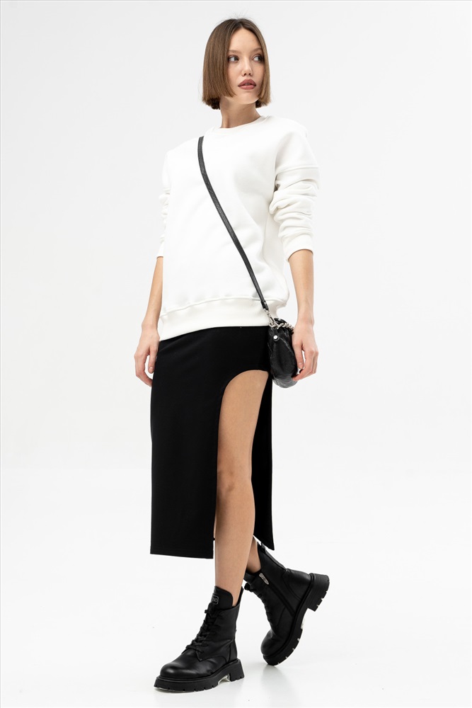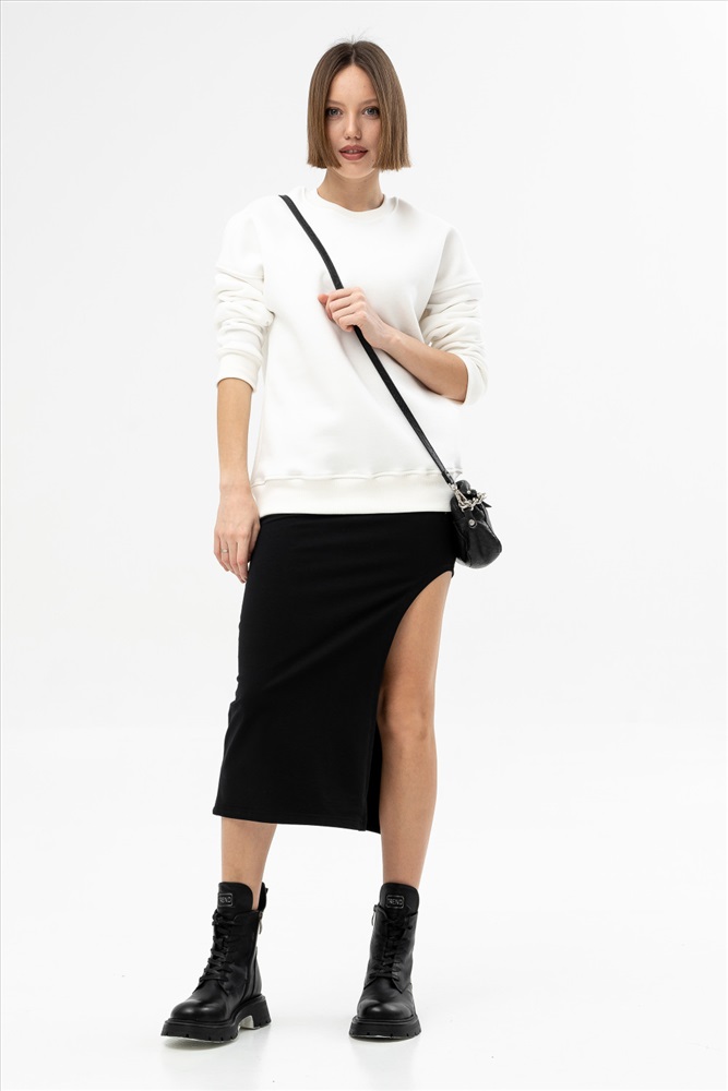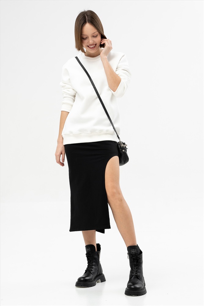 Стильная юбка-карандаш, выполненная из приятного к телу мягкого и шелковистого хлопкового футера, одновременно подходящая как для спортивного, так и для элегантного образа, подчеркивающая женственные изгибы тела. Длина до середины икры не ограничивает движения за счёт кокетливого и фигурного разреза сбоку и создает позитивное восприятие образа. Модель прекрасно подходит для свидания, а в сочетании с классическими блузами и рубашками будет уместна в офисе.