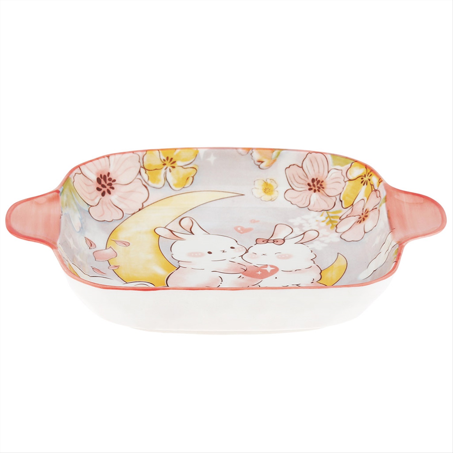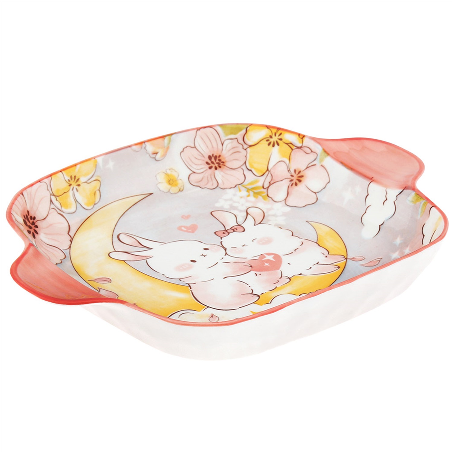 "Зайки" Блюдо фарфоровое 235х182х40мм, с ручками, с деколью, отводка (Китай)