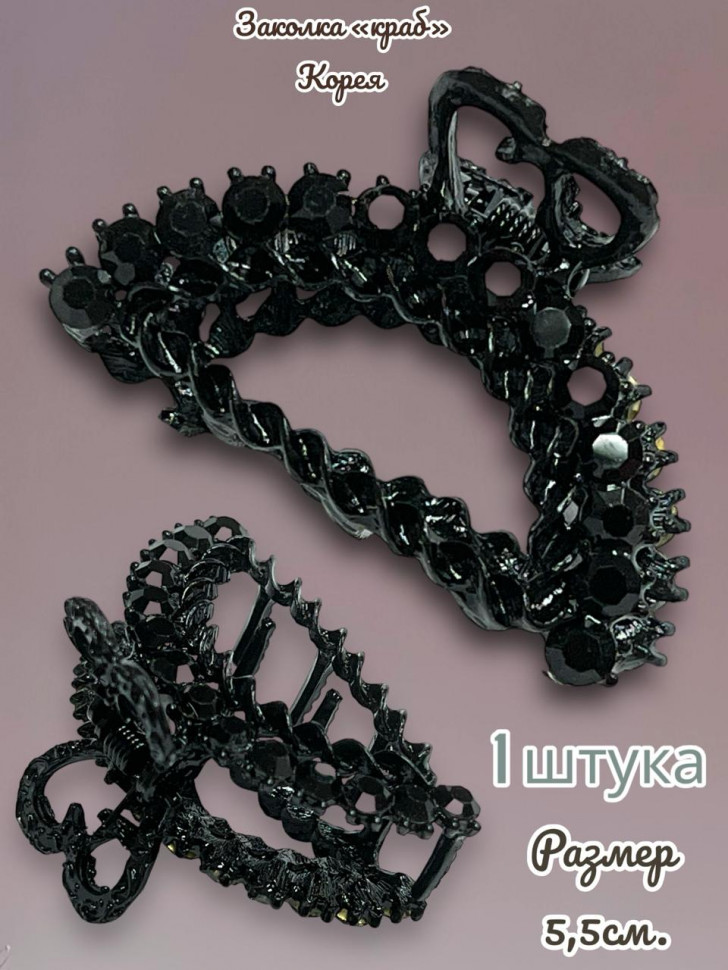 Стильная и красивая заколка среднего размера. Выполнена из качественного металла. Инкрустирована стразами. Подойдет как для густых так и для тонких волос и дополнит вашу прическу.
