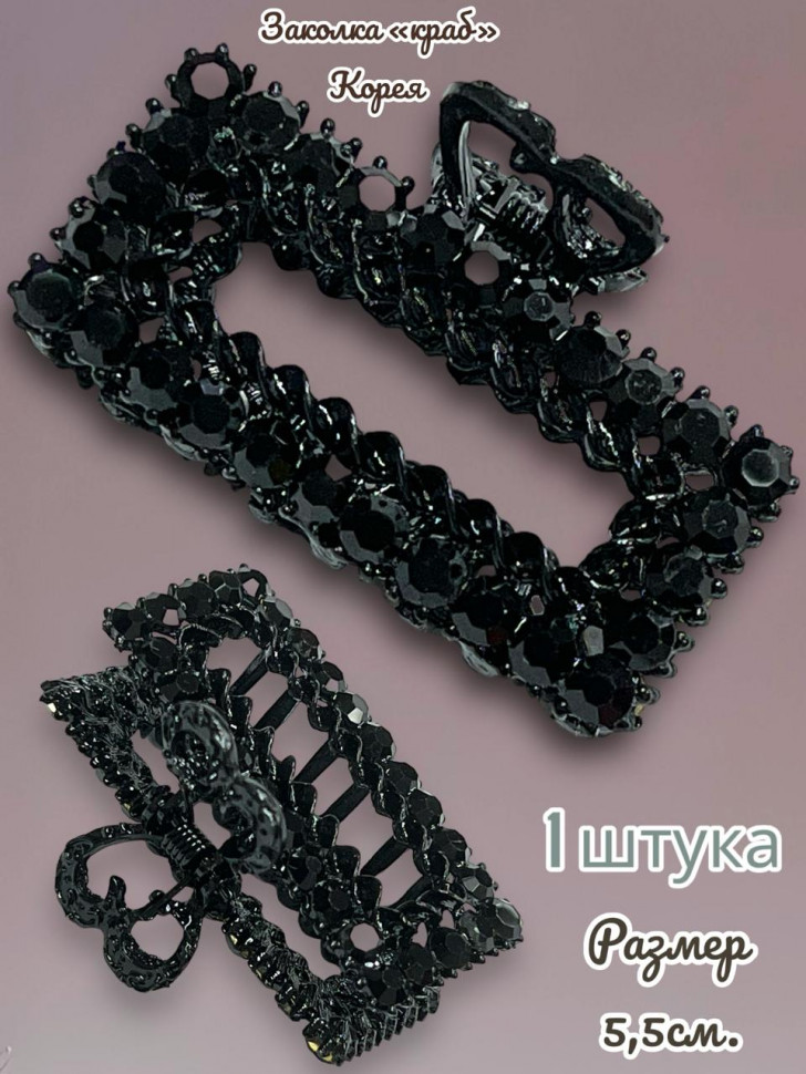Стильная и красивая заколка среднего размера. Выполнена из качественного металла. Инкрустирована стразами. Подойдет как для густых так и для тонких волос и дополнит вашу прическу. Производитель Корея Размер 5,5 см.