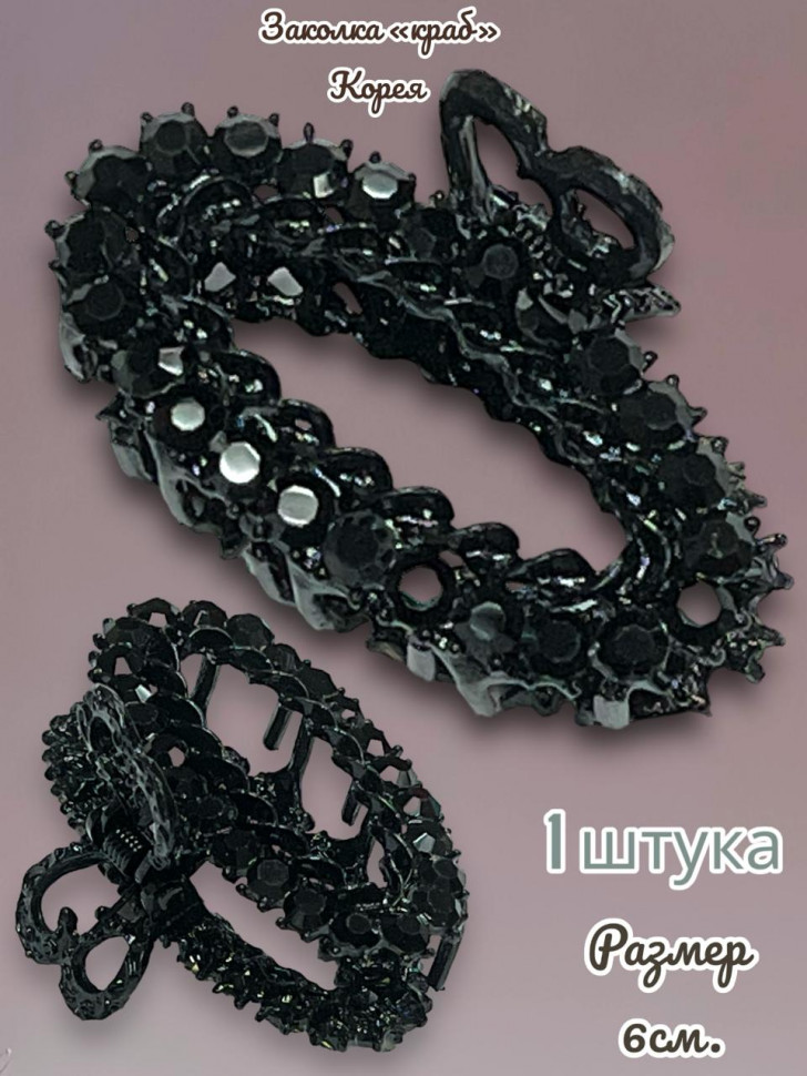 Стильная и красивая заколка среднего размера. Выполнена из качественного металла. Инкрустирована стразами. Подойдет как для густых так и для тонких волос и дополнит вашу прическу. Производитель Корея Размер 6*4 см.