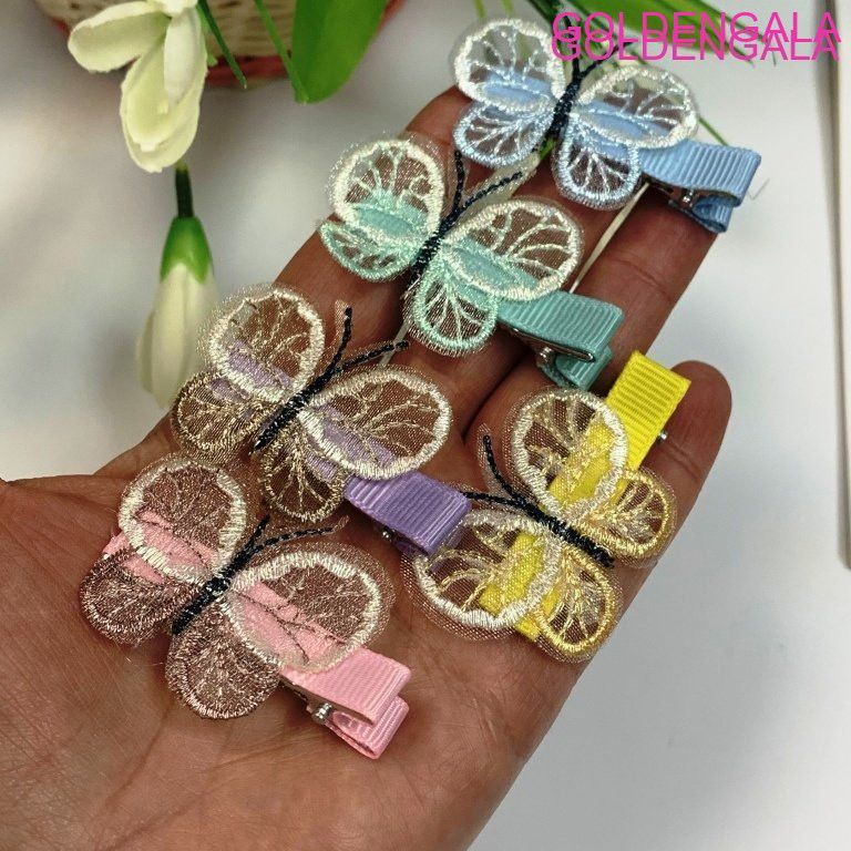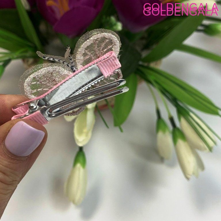 Заколка-уточка для волос с бабочкой из органзы детская 5,5 см УТ14 тип 2