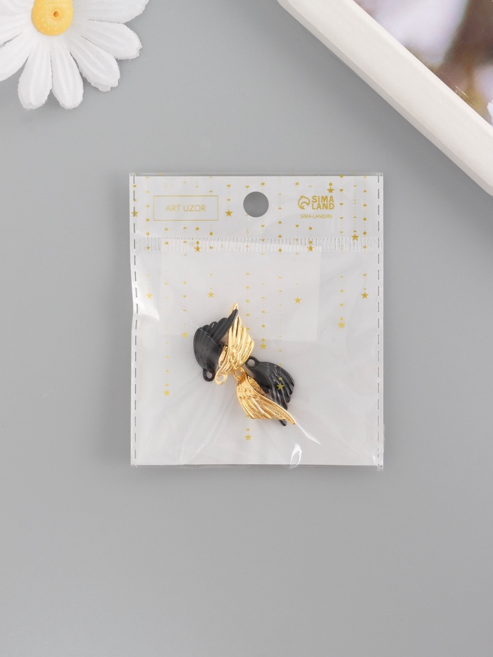 Замок магнитный металл «Крылья», набор 2 шт., чёрно-золотой, 2.6×1.9 см