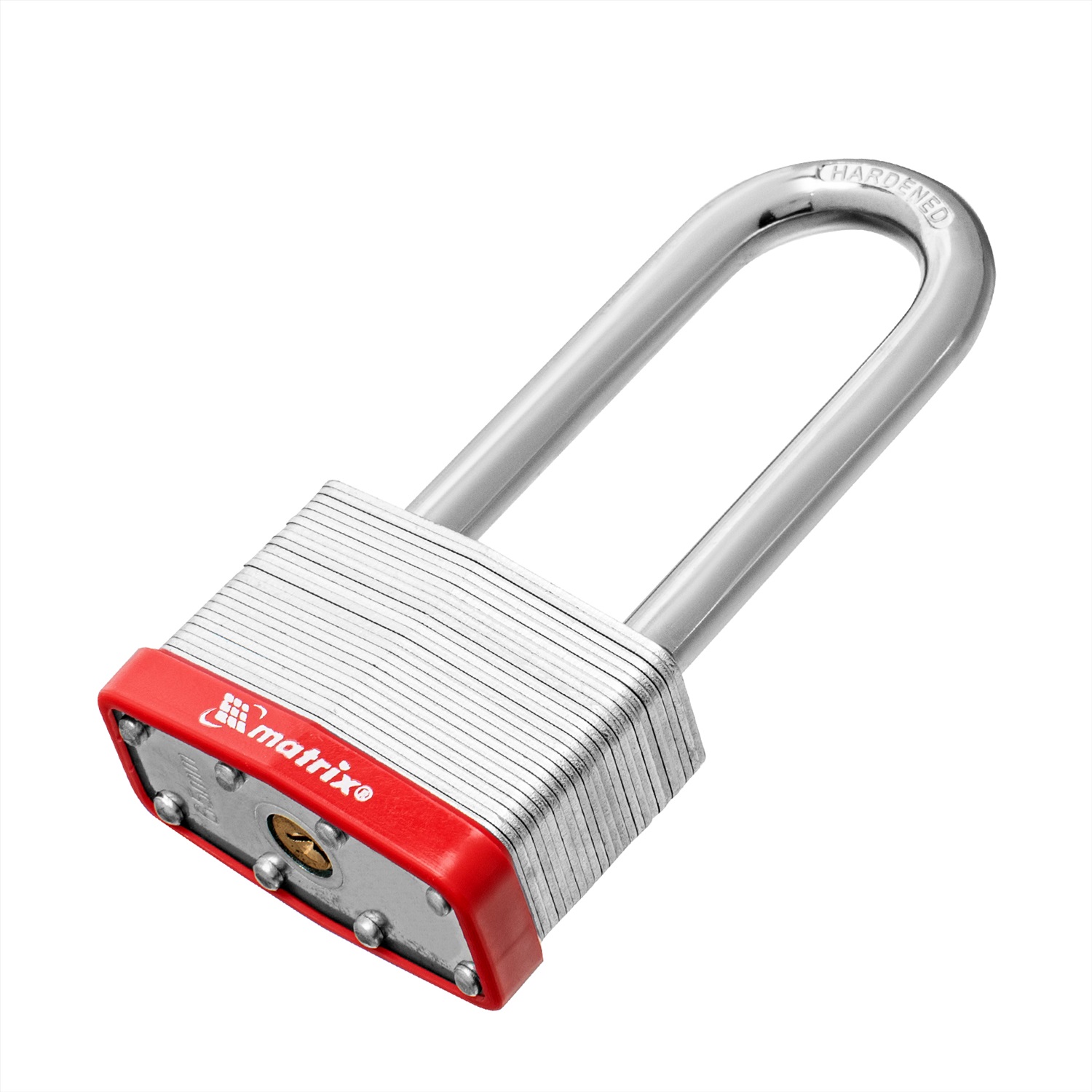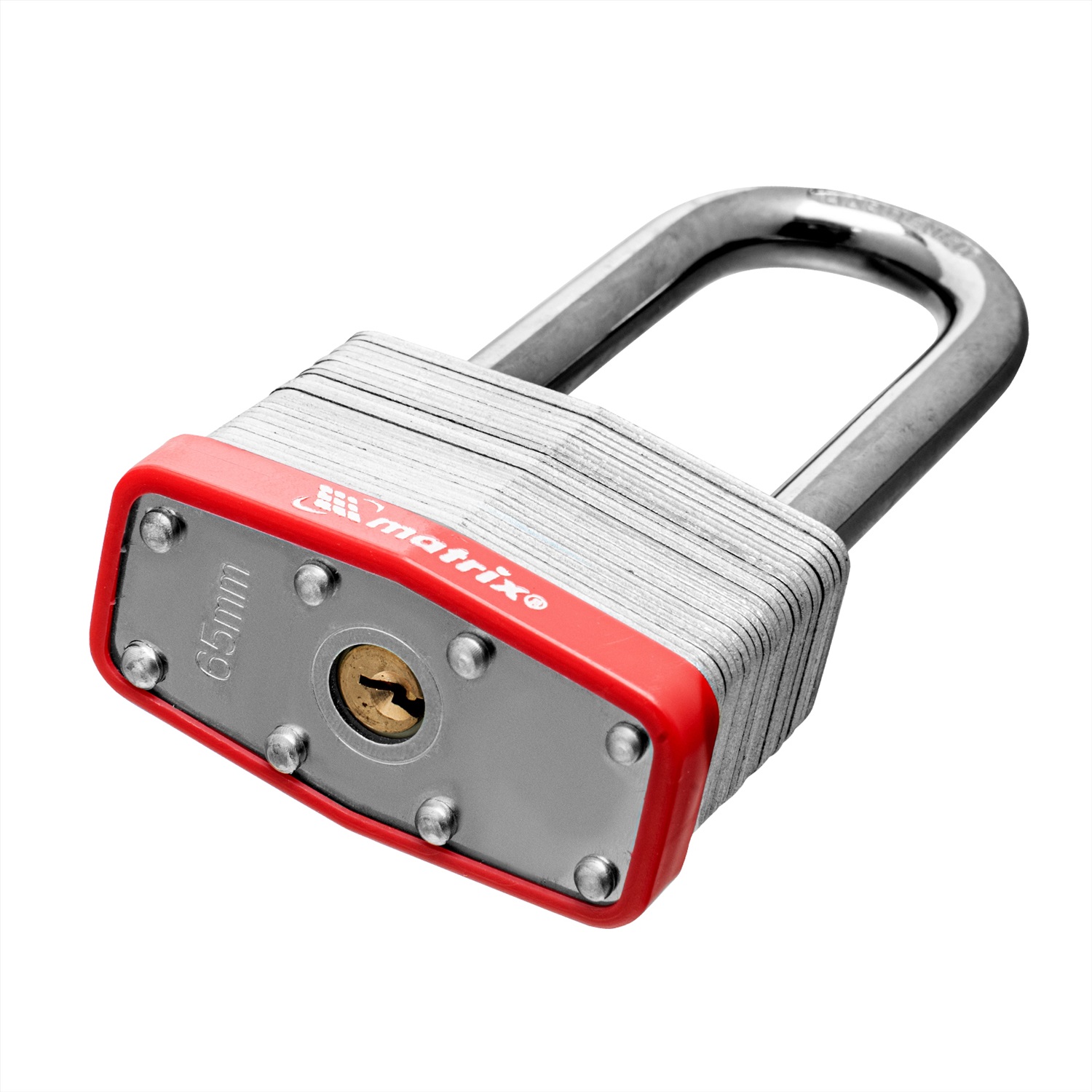Навесной замок Matrix 91811 шириной 65 мм, с удлиненной дужкой, вешается на дверь для защиты от несанкционированного проникновения. Пригодится для запирания дверей гаража, подсобки и других помещений. Отличается повышенной взломостойкостью, т.к. дужку диаметром 11 мм сложно перекусить или сорвать.