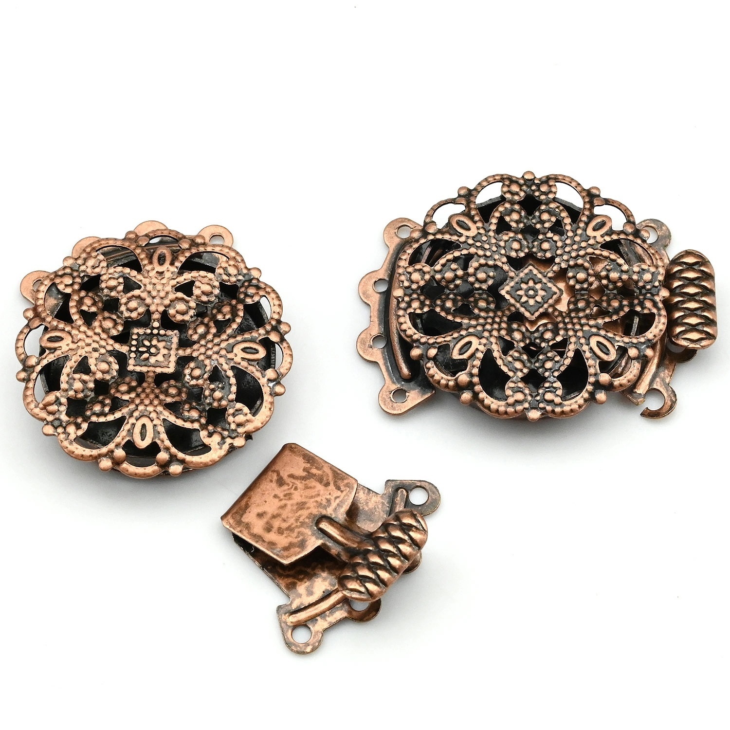 •Замок тип раздвижной (коробчатый-металлическая коробочка, в которой имеется щель под пружинную пластину с защёлкой или металлический крючок).Замок предназначен для бус, ожерелий, колье, браслетов.