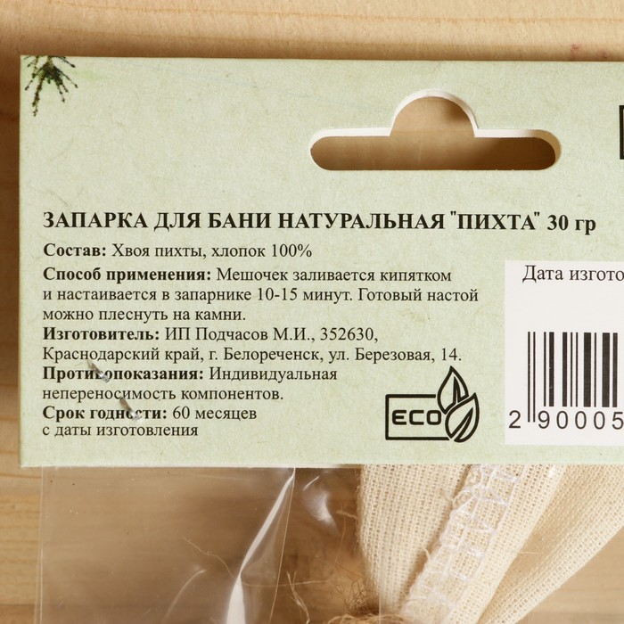 Производитель: Добропаровъ; Габариты: 9 x 7 x 5; Страна: Россия; В боксе: 295 шт; Состав: Трава; Материалы: трава; Фасовка: по 1 шт; Индивидуальная упаковка: Пакет; Сертификат: Не подлежит сертификации; Аромат: Пихта; Вес запарки, г: 30 Запарки для бани — это идеальное решение для тех, кто хочет насладиться ароматным паром и получить пользу для здоровья. Преимущества набора * Запарки изготовлены из экологически чистых трав. * Каждая трава обладает уникальными лечебными свойствами, которые помогут укрепить иммунитет, улучшить кровообращение, успокоить нервную систему. Способ применения * Поместите мешочек в ёмкость с горячей водой и запаривайте в течение 15–20 минут. * Поддавайте настоявшуюся воду на камни банной печи или разбрызгивайте с помощью веника на стены и полки. * Также мешочек запарки можно замочить в ведре вместе с веником, что позволит усилить его целебные свойства и повысить эффективность банных процедур. Наслаждайтесь ароматным паром и целебными свойствами трав!