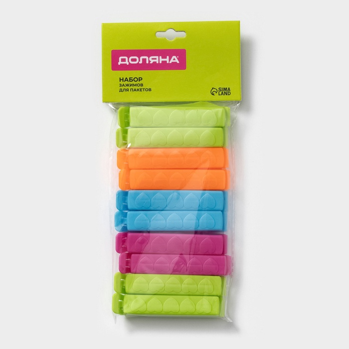 Габариты: 20 x 9,5 x 1,5 Страна: Китай В боксе: 240 набор В наборе: 10 набор Состав: Пластик Материалы: пластик Фасовка: по 1 набор Индивидуальная упаковка: Клапан, пакет Габариты товара: 7,5 см × 1,4 см × 1,5 см Сертификат: СТР Цвет: МИКС В наборе, шт.: 10 Материал: Пластик Зажимы для пакетов из прочного пластика предназначены для герметичного закрывания, предотвращают от попадания воздуха и влаги, что помогает дольше сохранить свежесть продуктов, прочно закрывают пакет, поэтому его содержимое не рассыплется. Преимущества: Комментарии к товару