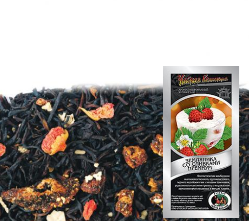 Фантастическая комбинация высококачественного крупнолистового черного индийского чая с ягодами земляники, украшенная соцветиями граната. Состав: чай байховый крупнолистовой, кусочки земляники, лепестки амаранта, соцветия граната, листья ежевики, черной смородины, ароматизировано маслами.