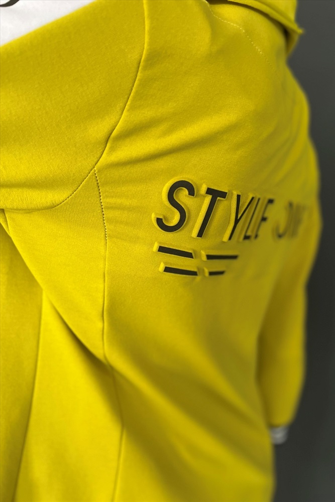 Жакет полуприлегающего силуэта, длиной до середины бедра, с английским воротником. Рукав втачной, длинной 7/8, с отделочным лампасом вдоль рукава, на эластичном манжете. В нижней части полочки расположены накладные карманы. Спинка с рельефами.