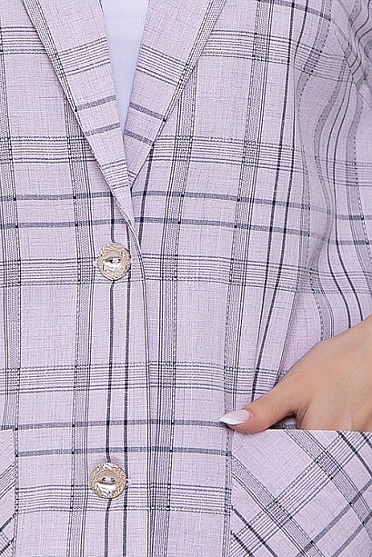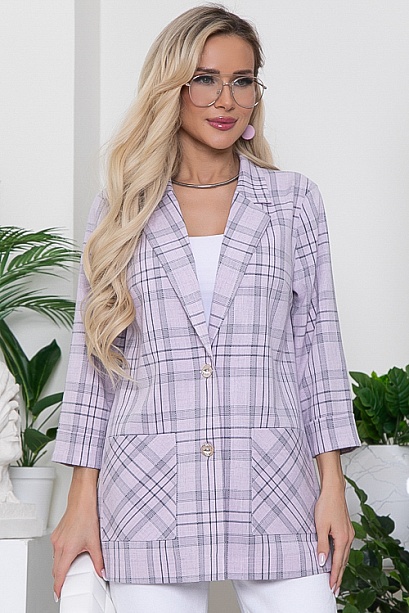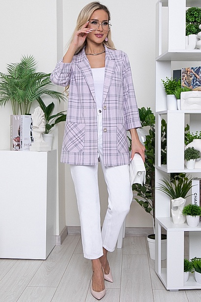 • Жакет из комфортной,качественной костюмной ткани свободного силуэта,в боковых швах разрезы.Центральная застежка на две пуговицы.По переду удобные накладные карманы.Рукава втачные.