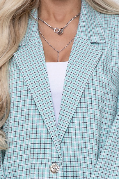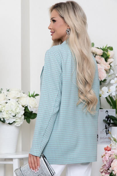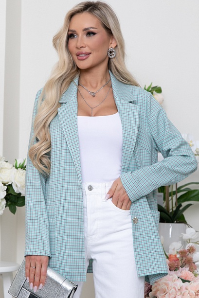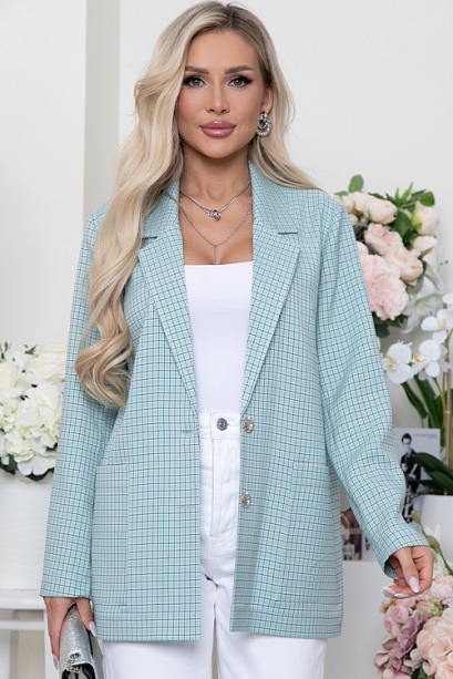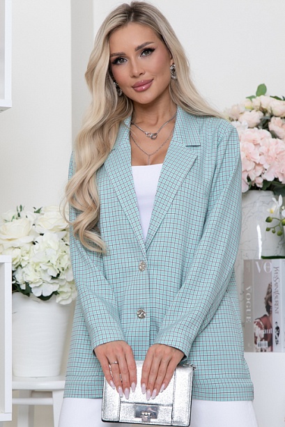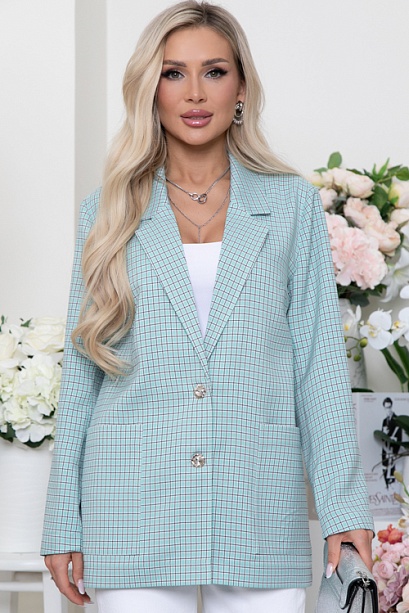 •  Жакет из комфортной  костюмной ткани с отложным воротником с лацканами свободного силуэта, с центральной застежкой на две пуговицы и  удобными накладными карманы.