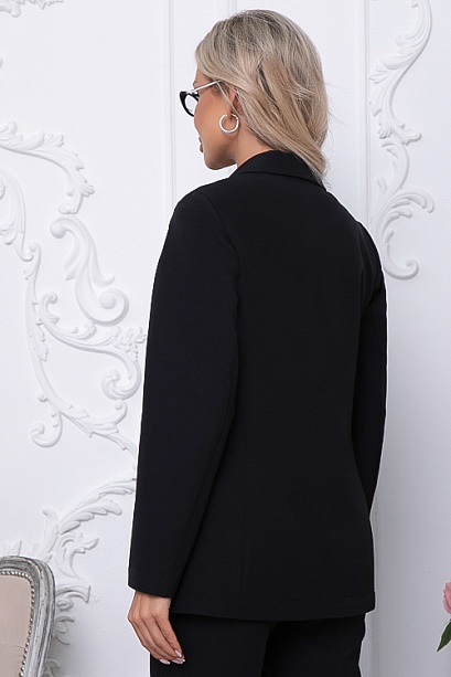• Жакет из костюмной ткани, полуприлегающего силуэта, перед и спинка на подкладе. Воротник отложной с лацканами. Центральная застежка на три петли и пуговицы. По переду удобные прорезные карманы с клапанами.