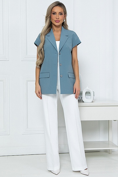 • Жакет  свободного силуэта из костюмной ткани(ткань производство Ю.Корея) с цельнокроеными рукавами. Центральная застежка на пуговицы.По переду функциональные карманы в рамку и клапана.Воротник отложной с лацканами.В комплекте пояс из основной ткани.