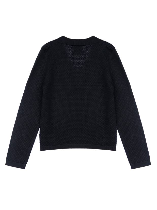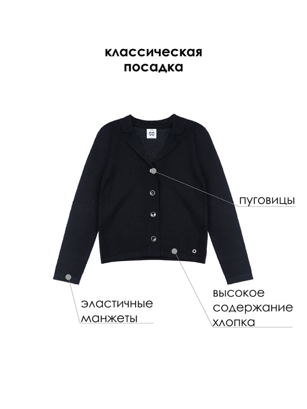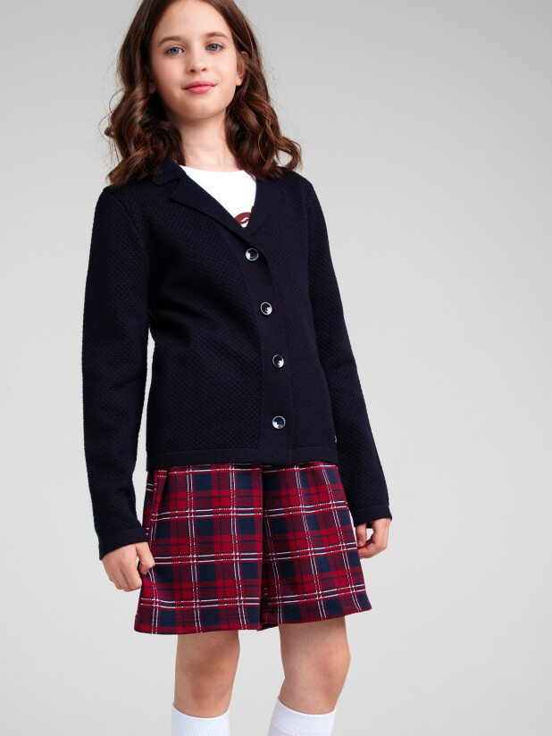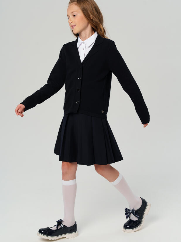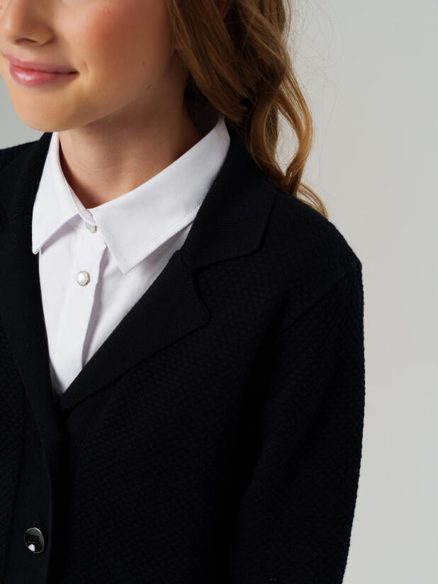 Модный темно-синий вязаный пиджак в школу для девочки от PlayToday — это гармония стиля, комфорта и универсальности для школьных дней!