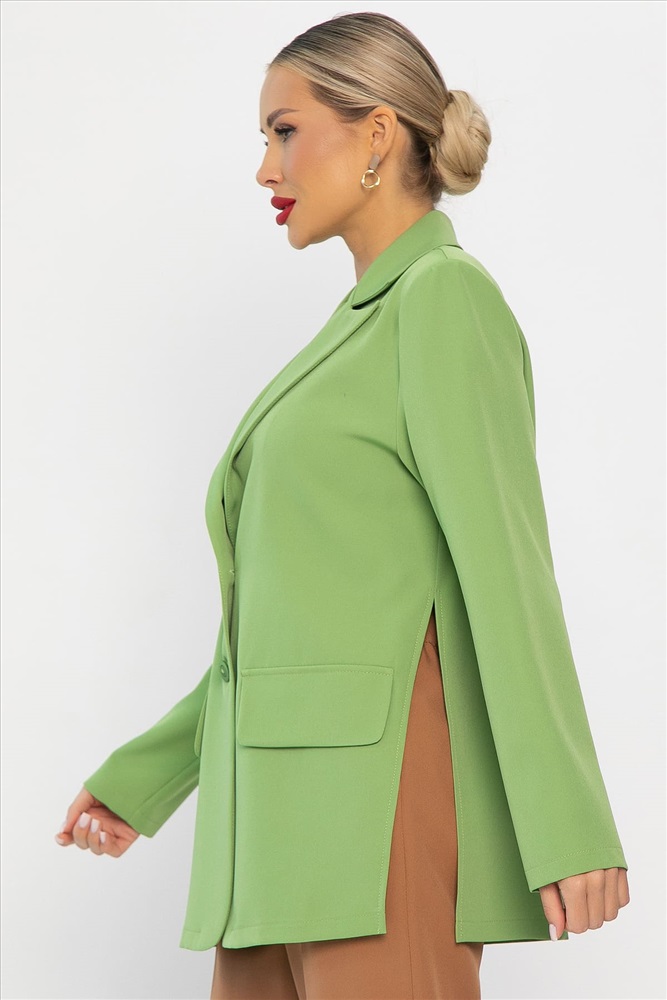 Элегантный пиджак прямого кроя приятного зелёного цвета — идеальное сочетание стиля и комфорта. Выполненный из высококачественных материалов, он обеспечивает отличную посадку и свободу движений. Этот пиджак станет ярким акцентом в вашем гардеробе, легко сочетаясь как с классическими, так и с повседневными образами. Добавьте свежести и уверенности в свой стиль с этим универсальным и модным изделием!