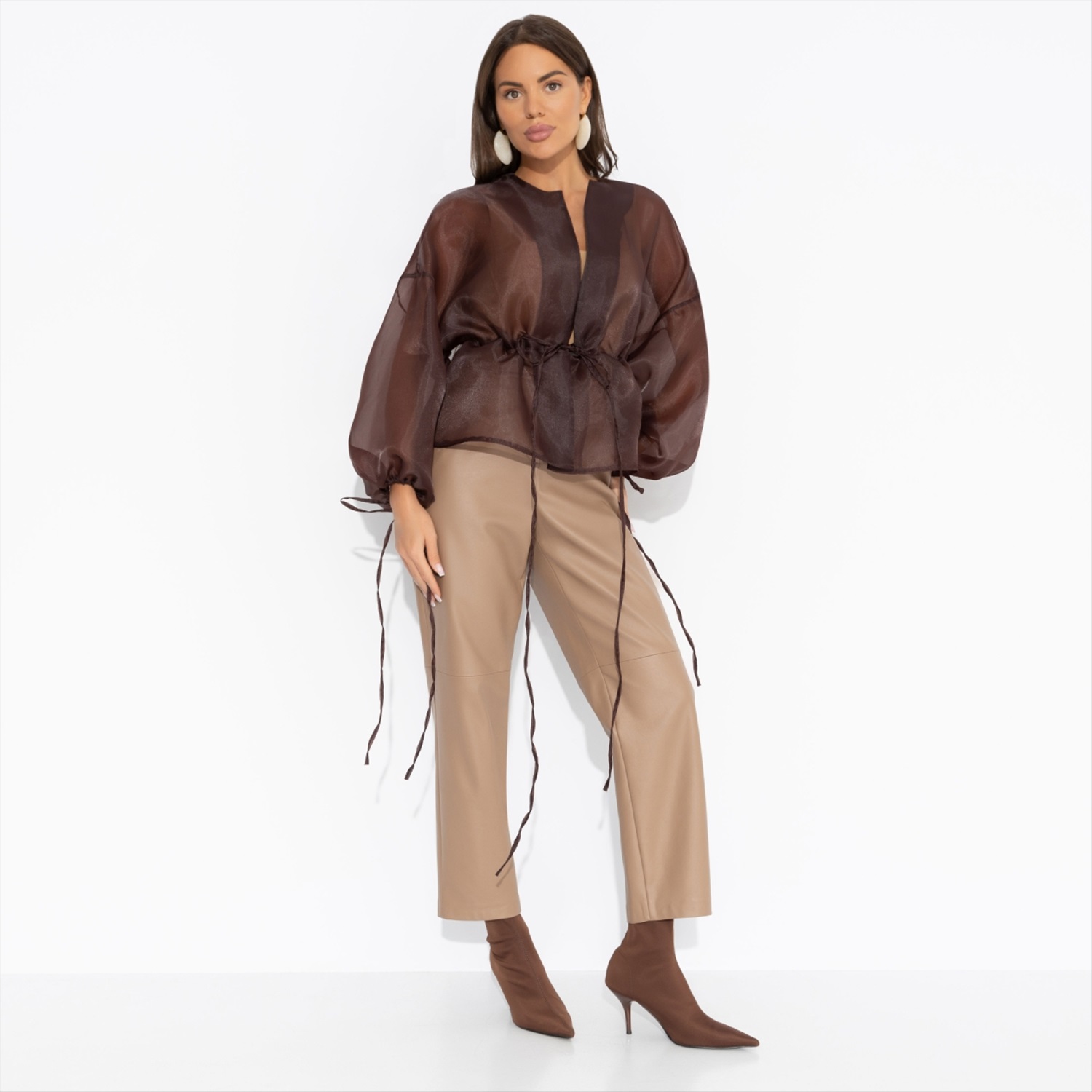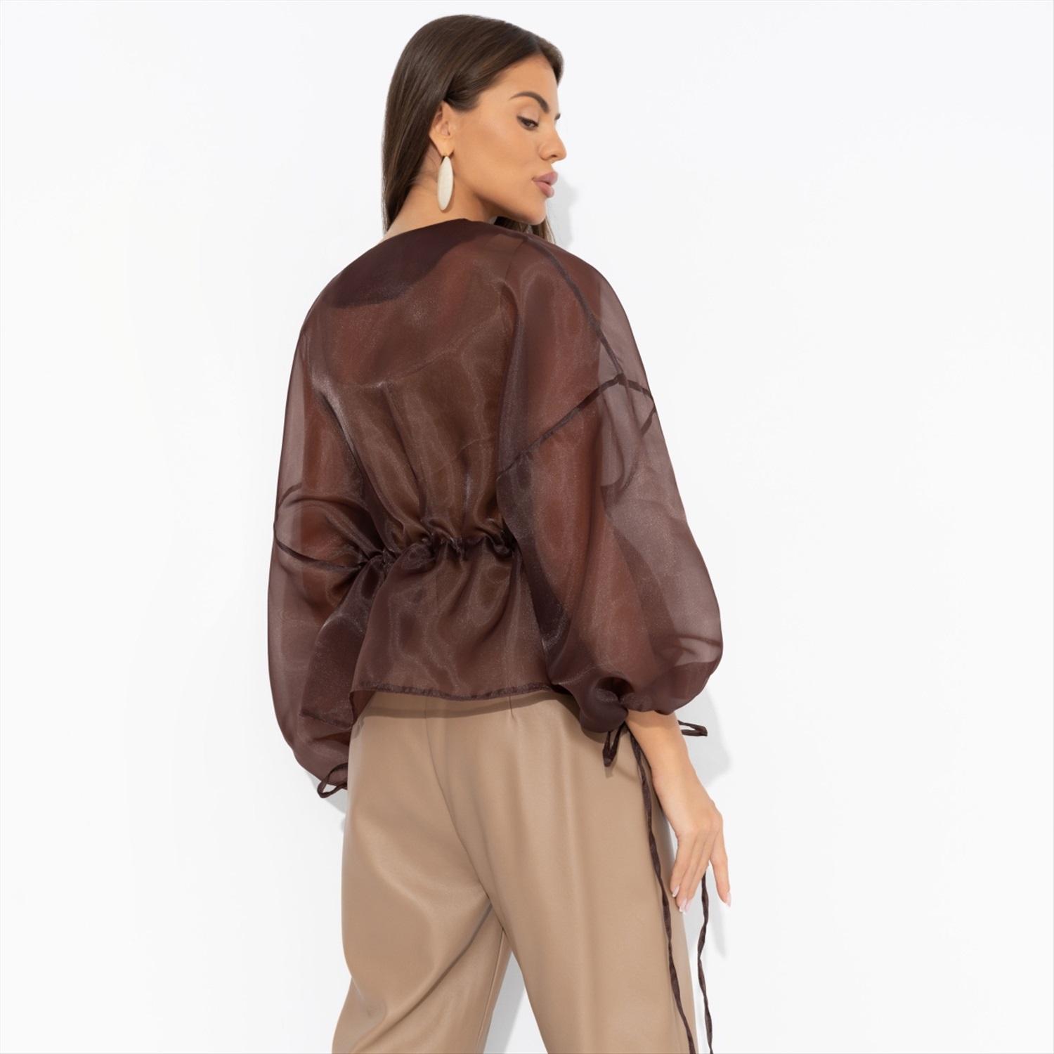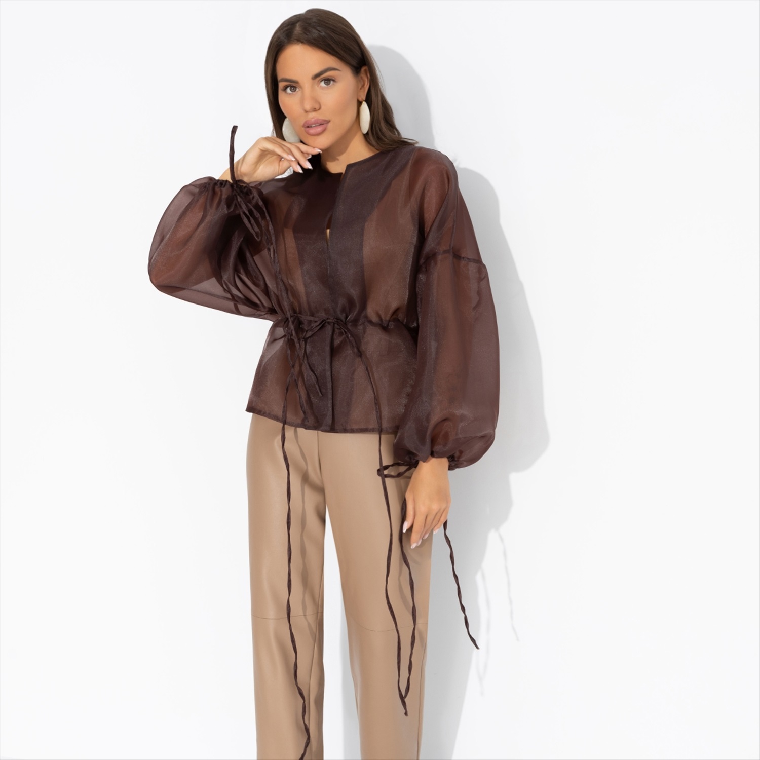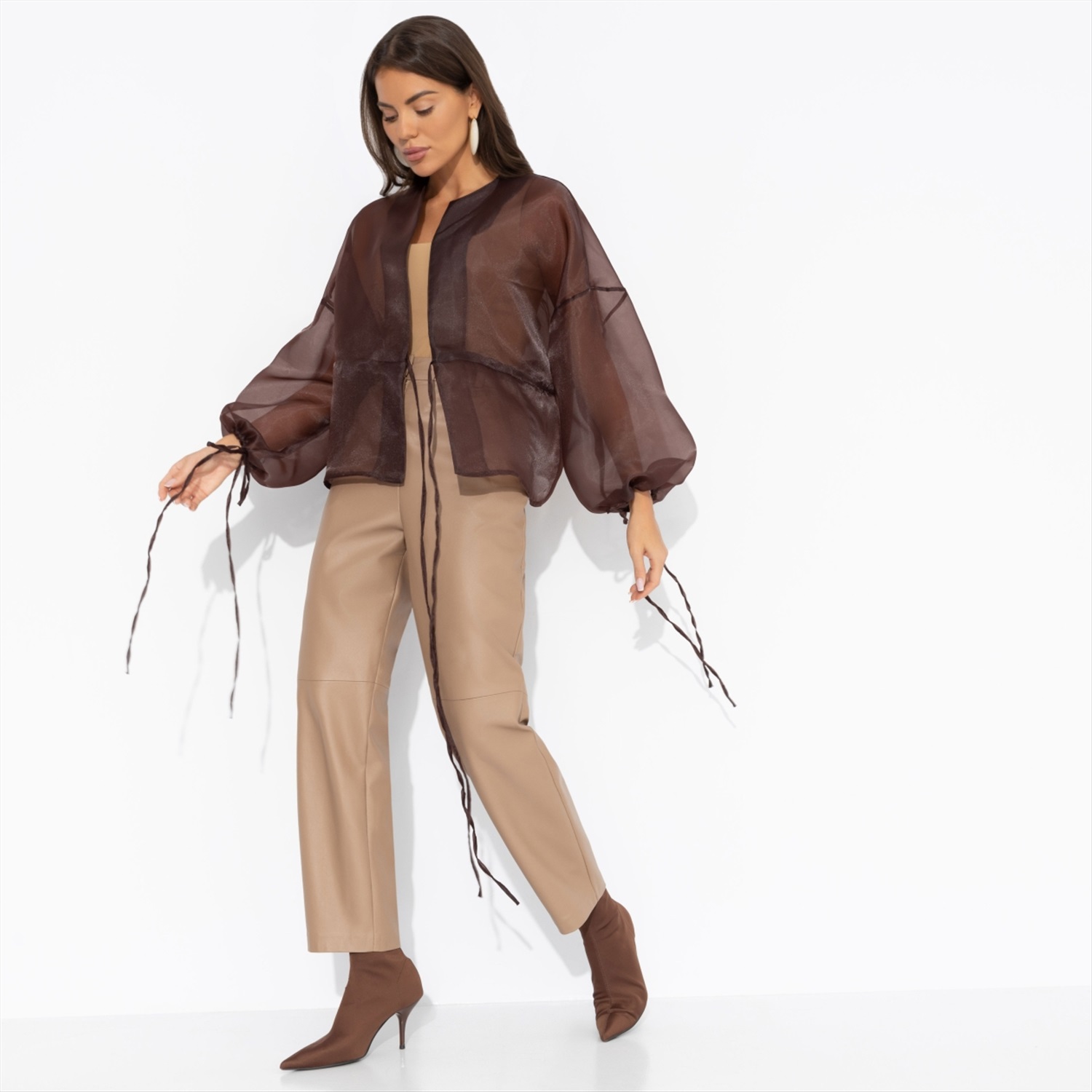 Жакет ЧАРУТТИ из струящейся органзы – её награда. Словно после длительной диеты она пробует долгожданный шоколадный фондан. Это несравненный вкус, воплощенный в ткани. Без компромиссов и угрызений совести. Он принадлежит тебе каждой клеточкой. Жакет на завязках. Линия плеча спущена. Посадка свободная. Изделие просвечивает.