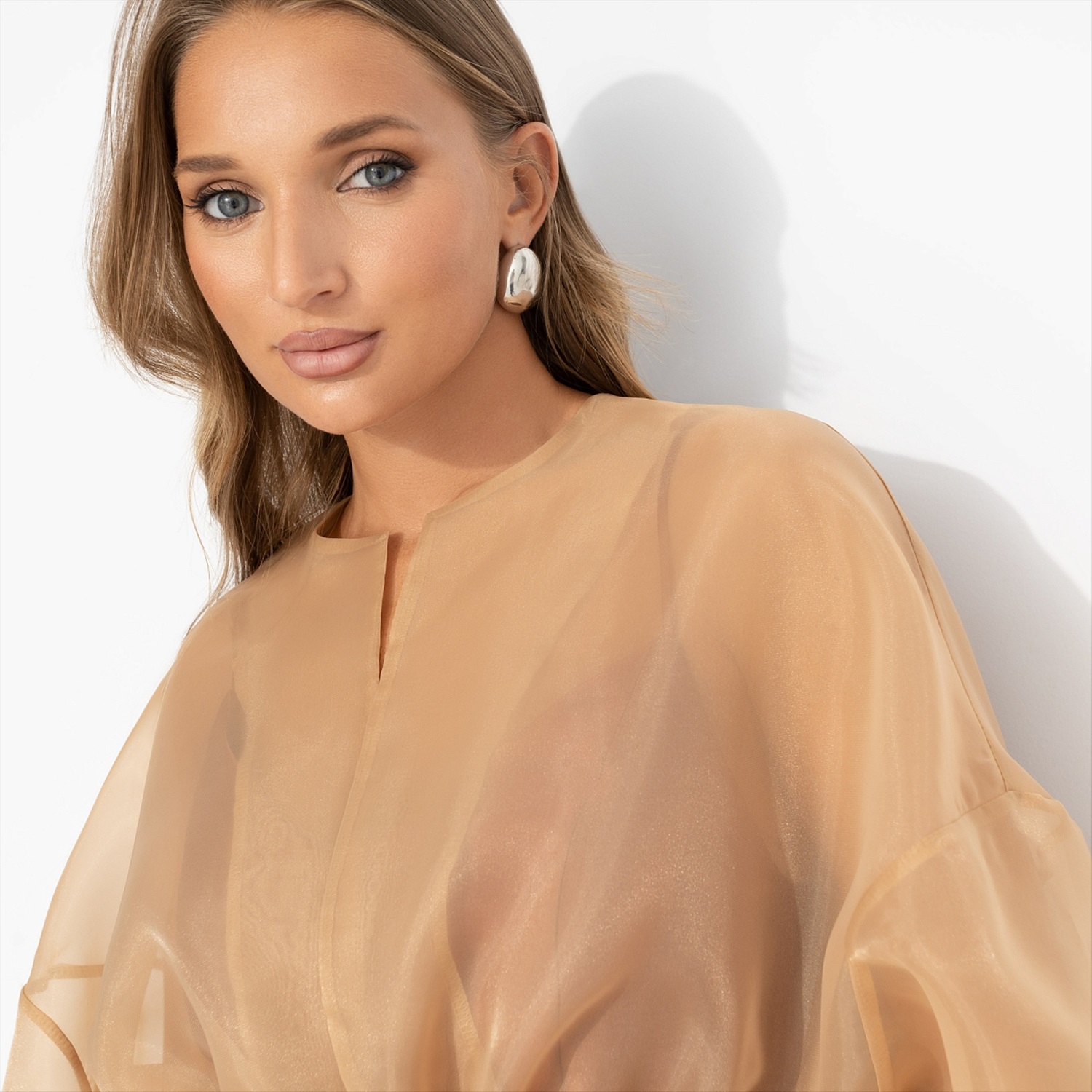 ТН ВЭД: 6104330000; Состав: «Органза» (100% полиэстер); Плотность ткани: Тонкая; Тип ткани: Текстиль; Вид застежки: Завязки; Карманы: Нет; Основной цвет ткани: Бежевый; Отрезная талия: Есть; Подклад: Нет; Резинка по талии: Нет; Рисунок/раппорт: Нет, все изделия идентичны; Сезон: Круглогодичный; Силуэт: Свободный; Стиль: Нарядный