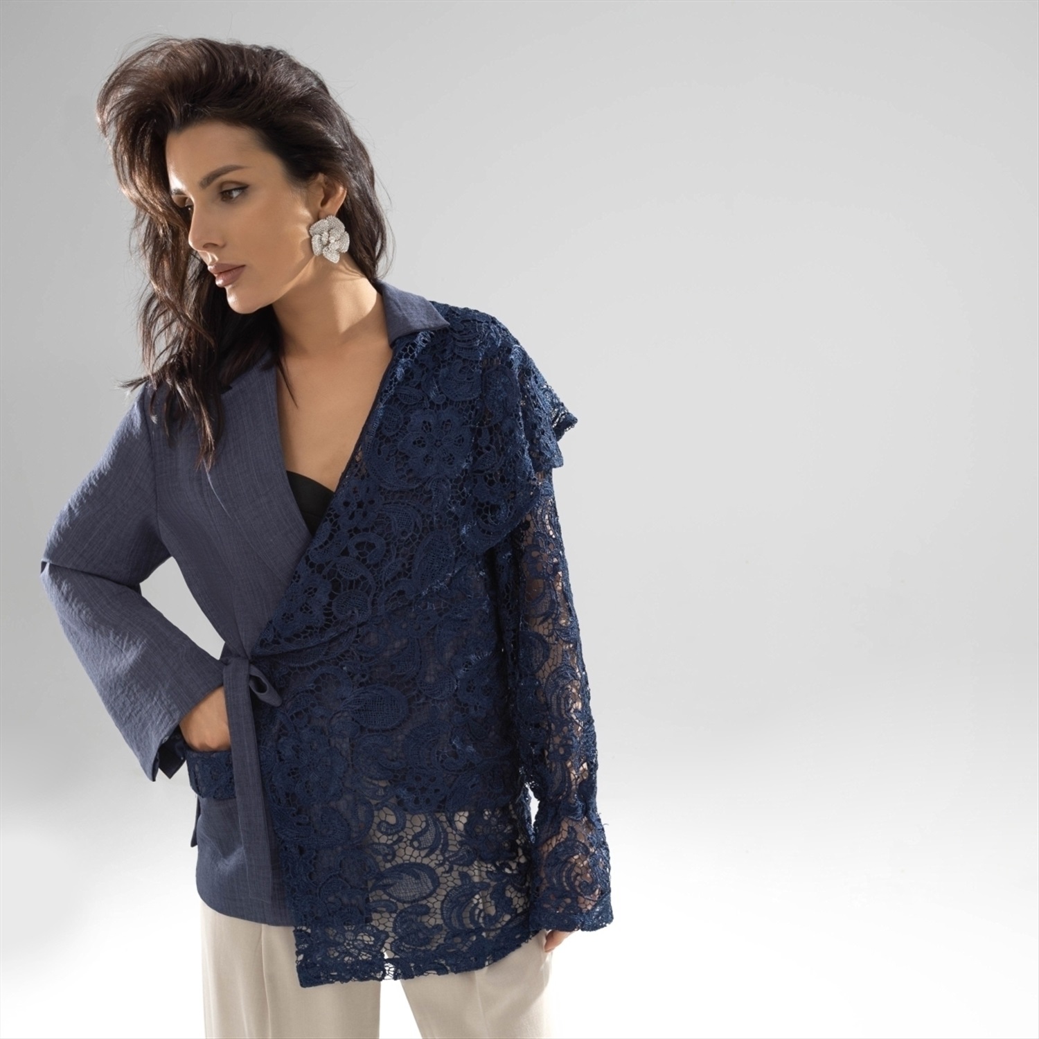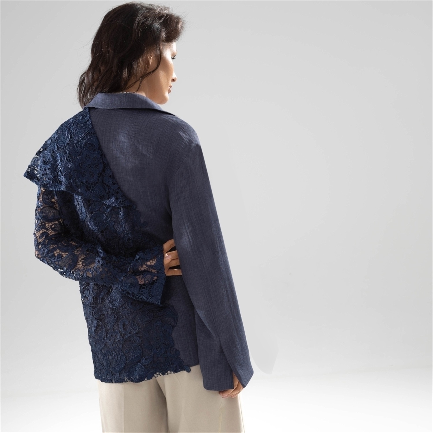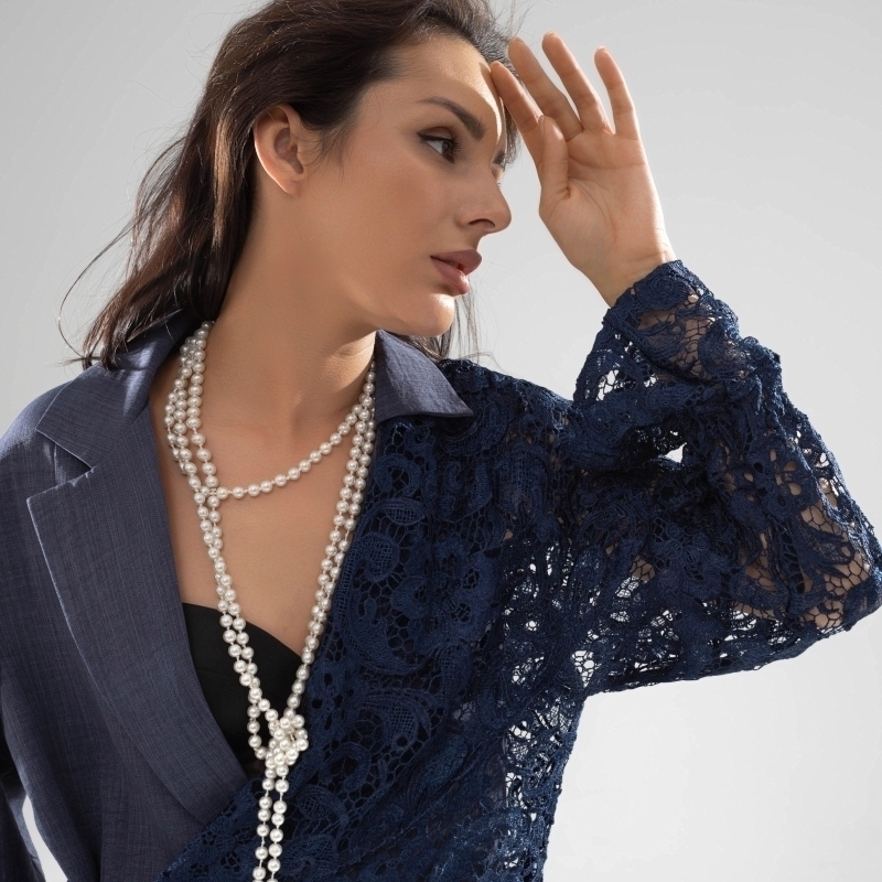 Состав: Костюмная ткань «лерисс», «кружево», «подкладочная ткань» (65% п/э, 30% хлопок, 5% спандекс) Плотность ткани: Средняя Тип ткани: Текстиль Вид застежки: Пуговица/-ы Дополнительный цвет ткани: Голубой Карманы: В рельефах Основной цвет ткани: Синий Отрезная талия: Нет Подклад: Есть Резинка по талии: Есть Рисунок/раппорт: Каждое изделие уникально из-за расположения рисунка на ткани Сезон: Круглогодичный Глубокий цвет ночного неба воплощен в комбинации двух видов ткани. Кружево, как символ романтичности, и костюмная ткань, как символ элегантности. Безупречное качество пошива. Жакет из двух видов ткани. Завязка на поясе. Расслабленный свободный крой подойдет любом типу фигуры. Приобретая жакет оптом, вы погружаетесь в мир утончённой элегантности и изысканности, которые способны преобразить любой гардероб. Этот жакет, созданный из великолепной комбинации костюмной ткани «лерисс» и нежного кружева, дышит роскошью. Глубокий оттенок ночного неба обладает магнетической притягательностью, привнося в ваш образ загадочность и стиль. Уникальный дизайн с завязкой на поясе позволяет не только подчеркнуть линию талии, но и добавить нотку игривости. Расслабленный крой идеально подходит для самых разных типов фигур, благодаря чему каждый будет чувствовать себя уверенно и комфортно, делая это предложение идеальным для покупок оптом. Для владельцев бутиков или розничных магазинов этот жакет представляет собой возможность подчеркнуть изысканность вашего ассортимента. Представьте, как посетители вашего магазина будут влюбляться в этот жакет с первого взгляда. Тончайшее кружево символизирует романтику, в то время как костюмная ткань добавляет элемент строгости и профессионализма. Жакеты оптом позволят вам создать коллекцию, которая удовлетворит вкусы самых требовательных клиентов. Они будут благодарны за возможность приобрести столь утончённое изделие, подчеркивающее их индивидуальный стиль. Совершая закупки оптом, вы получаете не только выгодные условия сотрудничества, но и увеличиваете свою конкурентоспособность на рынке моды. Каждая деталь этого жакета говорит о безупречном качестве пошива, что делает его идеальным выбором для создания капсульного гардероба. К тому же, универсальность его фасона позволяет комбинировать его как с повседневной, так и с деловой одеждой, открывая перед вашими клиентами безграничные возможности для самовыражения. Поэтому, вложение в эту серию жакетов в рамках оптовой закупки несомненно станет мудрым решением для развития вашего бизнеса. Комментарии к товару